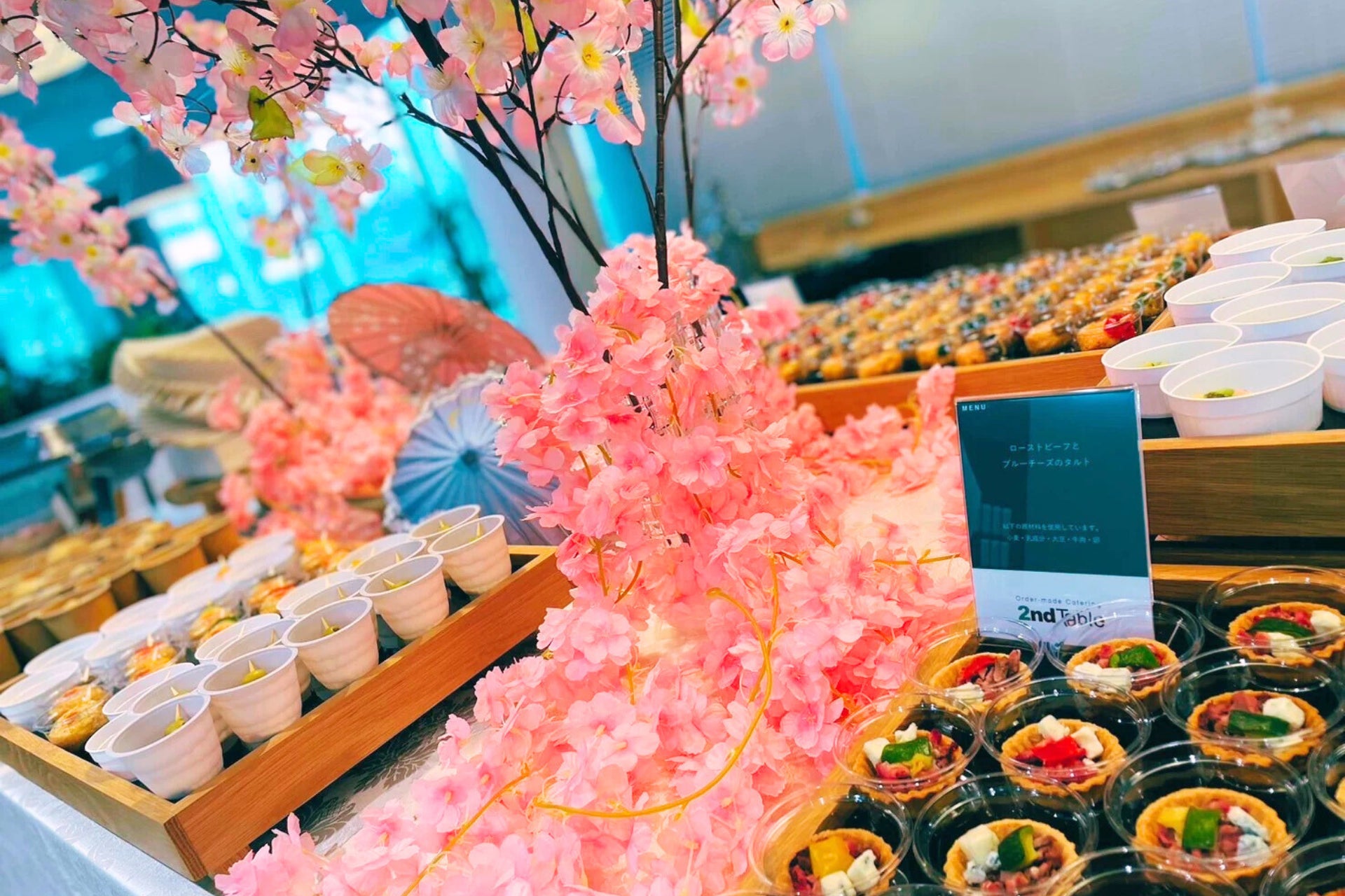 セカンドテーブルのケータリングでは、お花見にぴったりなお料理のご提供はもちろん、会場を華やかに彩る桜の装飾も承ります。