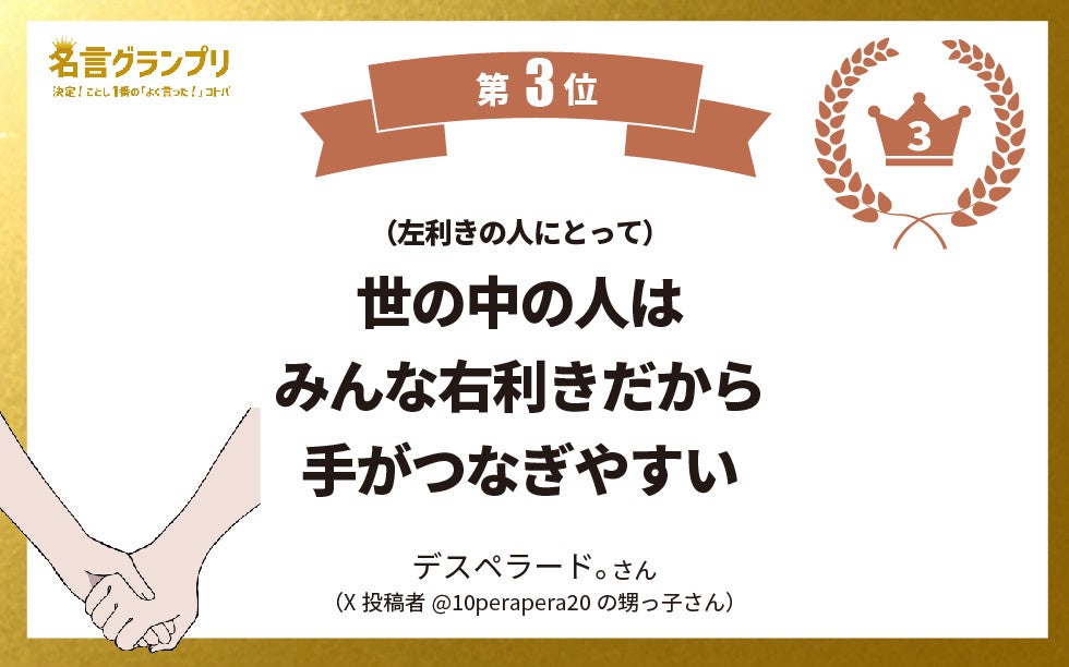 (左利きの人にとって)世の中の人はみんな右利きだから手がつなぎやすい ―デスペラード。さん(X 投稿者@10perapera20)の甥っ子さん |