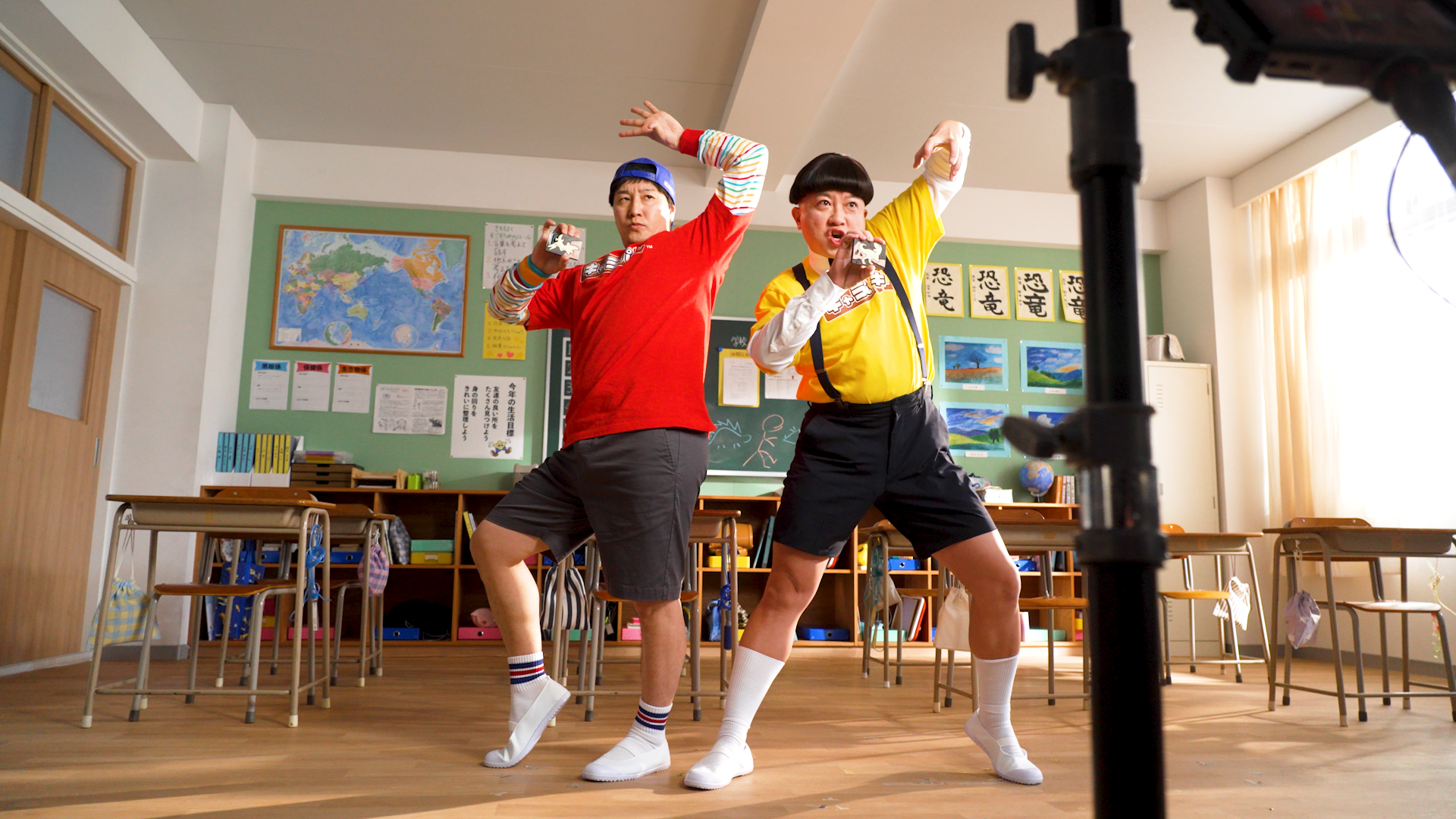⻑田庄平さん・松尾駿さんが必殺技を次々と繰り出すシーンの舞台裏や、真剣な表情から一転して笑いが起こる瞬間など、CM 本編では見ることのできない素顔や掛け合いを収録しています。