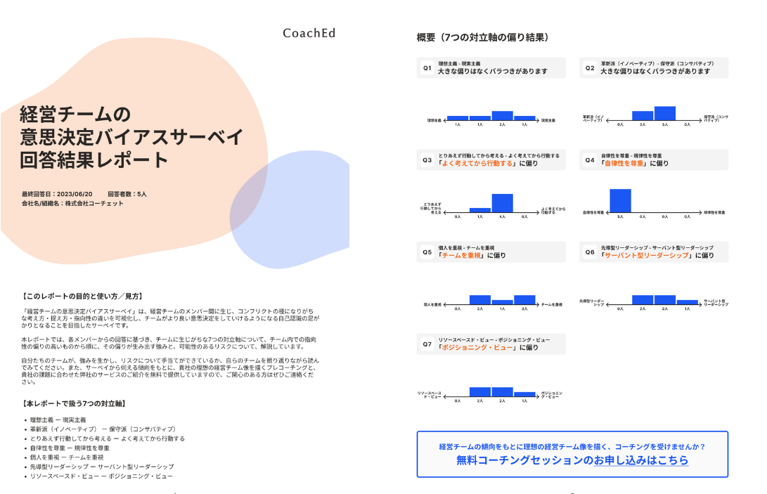 コーチェット、スタートアップ・中小企業の経営チームが持つバイアスを可視化し意思決定の質を高める「経営チームの意思決定バイアスサーベイ(β版)」をリリース