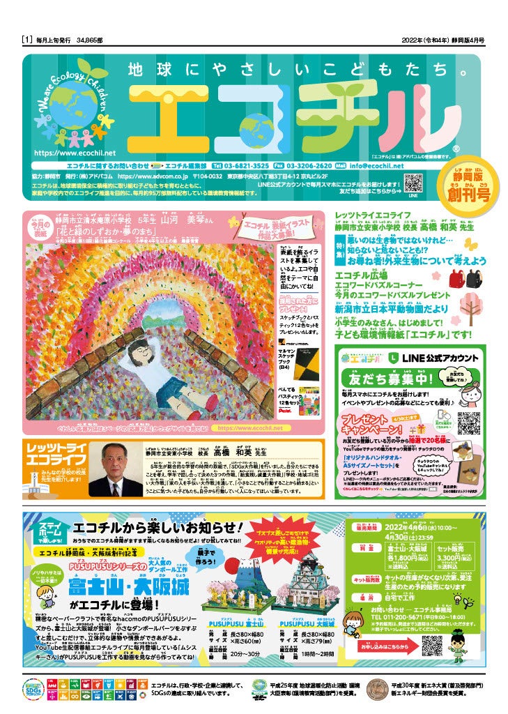 【子ども環境情報紙「エコチル」静岡版 創刊】エコな子どもたちを育む 環境・SDGs教育情報紙を静岡県静岡市内83校の公立小学校と国立・私立小学校4校で毎月無料配布開始