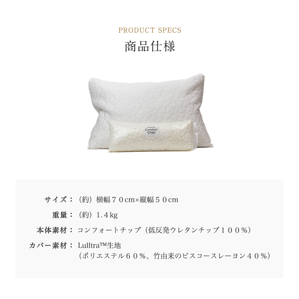 今回のコンフォートチップピローはそんな中でも”枕の高さが合わない!”という方には是非とも試してもらいたい商品だ。