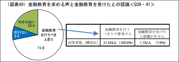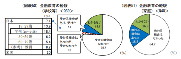 こうした社会や経済環境の変化を受け「金融教育」が必修化された一方で、教員自身が金融教育を受けた経験は8.2%と低く、金融教育を受けたことのない教員が生徒に指導しているケースが多いのが現状です(図表49・50・51参照)。