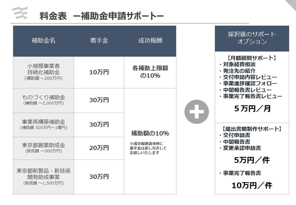 当社は、スタートアップやベンチャー企業の成長ステージに合わせて資金調達からPR・採用、EXITまでワンストップ支援をご提供しています。中でも、資金調達支援を得意としており、直近では事業再構築補助金など数千万円〜1億円の大型補助金の獲得とそれらに付随するデット調達の実績がございます。昨今は、コロナ禍で影響を受けている様々な業態・業種における企業様のご支援も行ってきました。補助金や助成金、給付金は様々なコロナ支援策などが盛り込まれた内容のものも数多く、発表されています。当社では、ご相談・ご依頼を受けた際にヒアリング等を通して、お客様それぞれに寄り添った情報の提供や補助金等のご提案、サポートに努めております。また、ご要望の多かった補助金採択後の交付申請書、中間報告書、事業完了報告書など面倒な書類作成業務など、アフターサポートも充実しております。