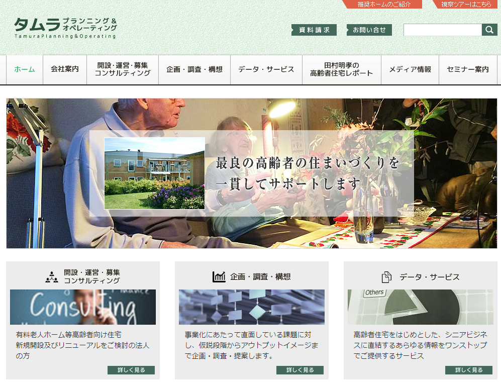 この他に付帯するホームページサービスは、高齢者住宅・施設のオープン情報や公募情報、M&A、業界ニュース