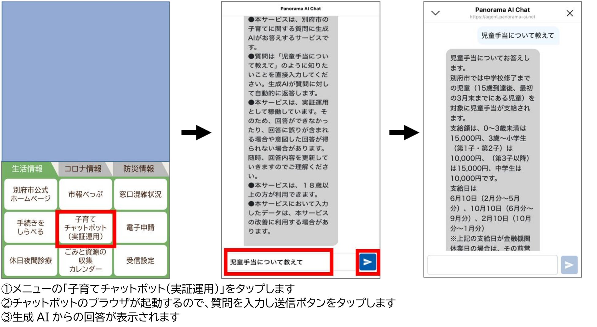 この連携協定に基づき、別府市は令和6年3月8日から生成AIを活用した「子育て分野」のチャットボットの実証運用を開始されました。
