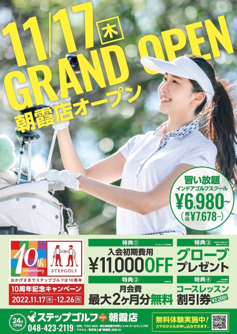 ステップゴルフ株式会社が運営する、インドアゴルフ施設「ステップゴルフプラス朝霞店」が2022年11月17日(木)にグランドオープンいたしました。