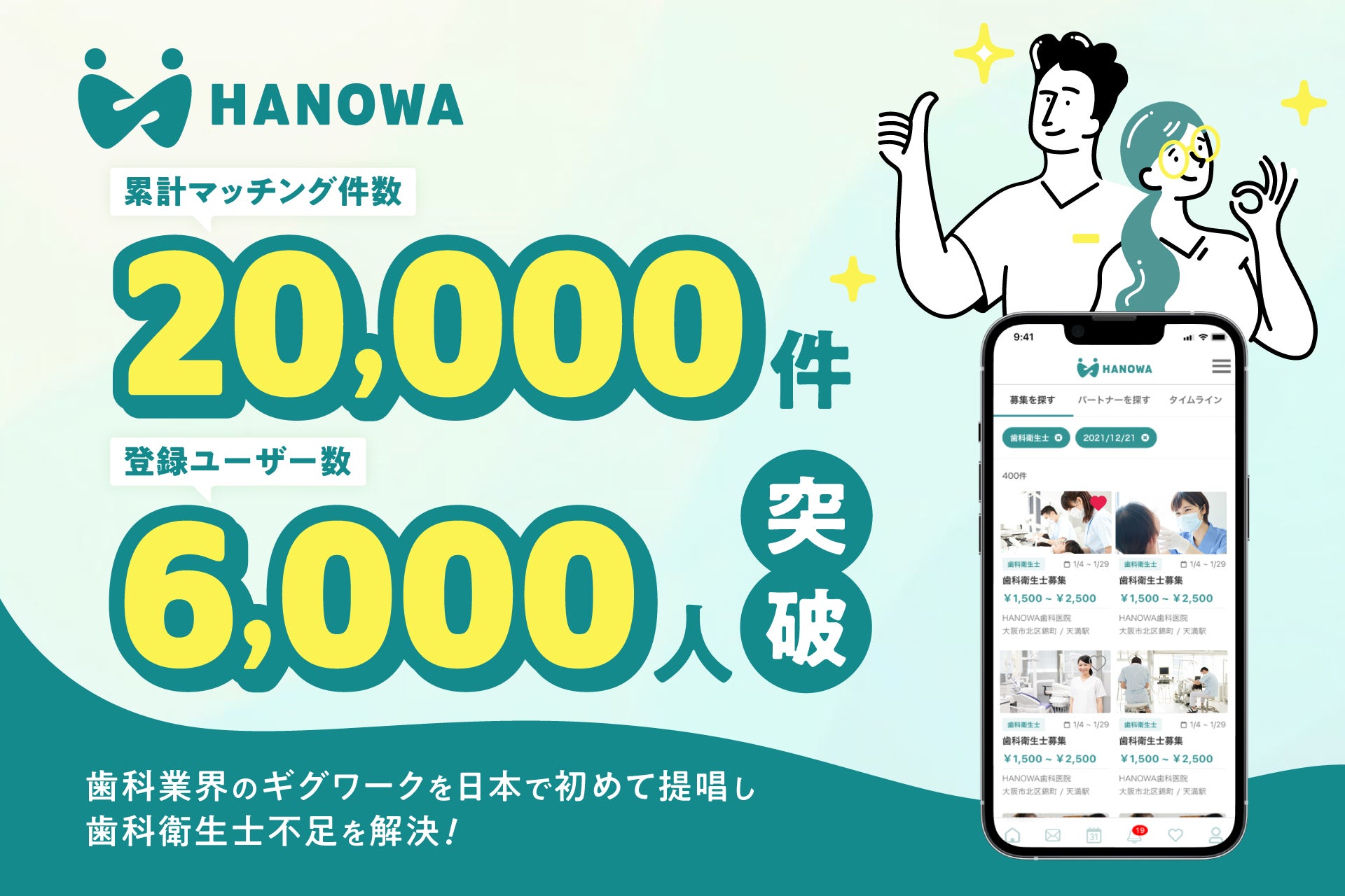 歯科医院と歯科医療従事者をつなぐマッチングプラットフォームHANOWA、累計マッチング件数20,000件、登録ユーザー数6,000人を突破し1年間で4倍規模に