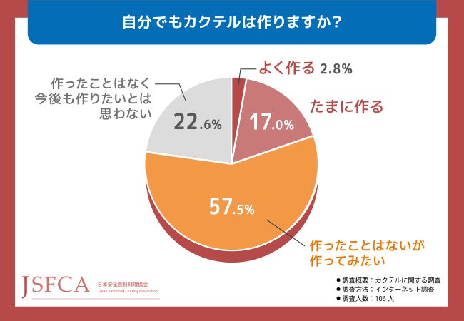 最も多かったのが、57.5%の『作ったことはないがカクテルを作ってみたい』という回答でした。