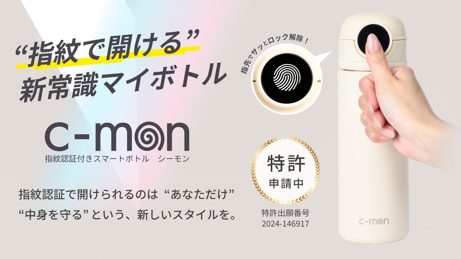 “飲み物に、セキュリティという選択肢を。”指紋認証ロック機能付きスマートボトル「c-mon(シーモン)」が誕生。6月27日(金)よりMakuakeにて先行販売開始