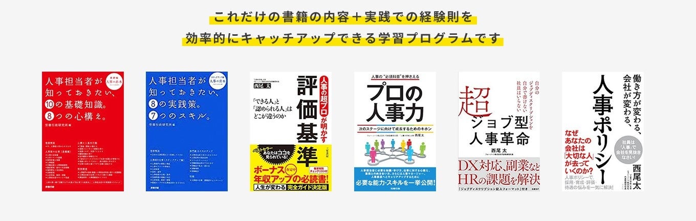 ベースとなる各人事領域に関する知識はもちろん、代表の西尾が企業人事と500社以上にもおよぶ人事コンサルティングの現場で見出した経験則を全12回の講座で提供。