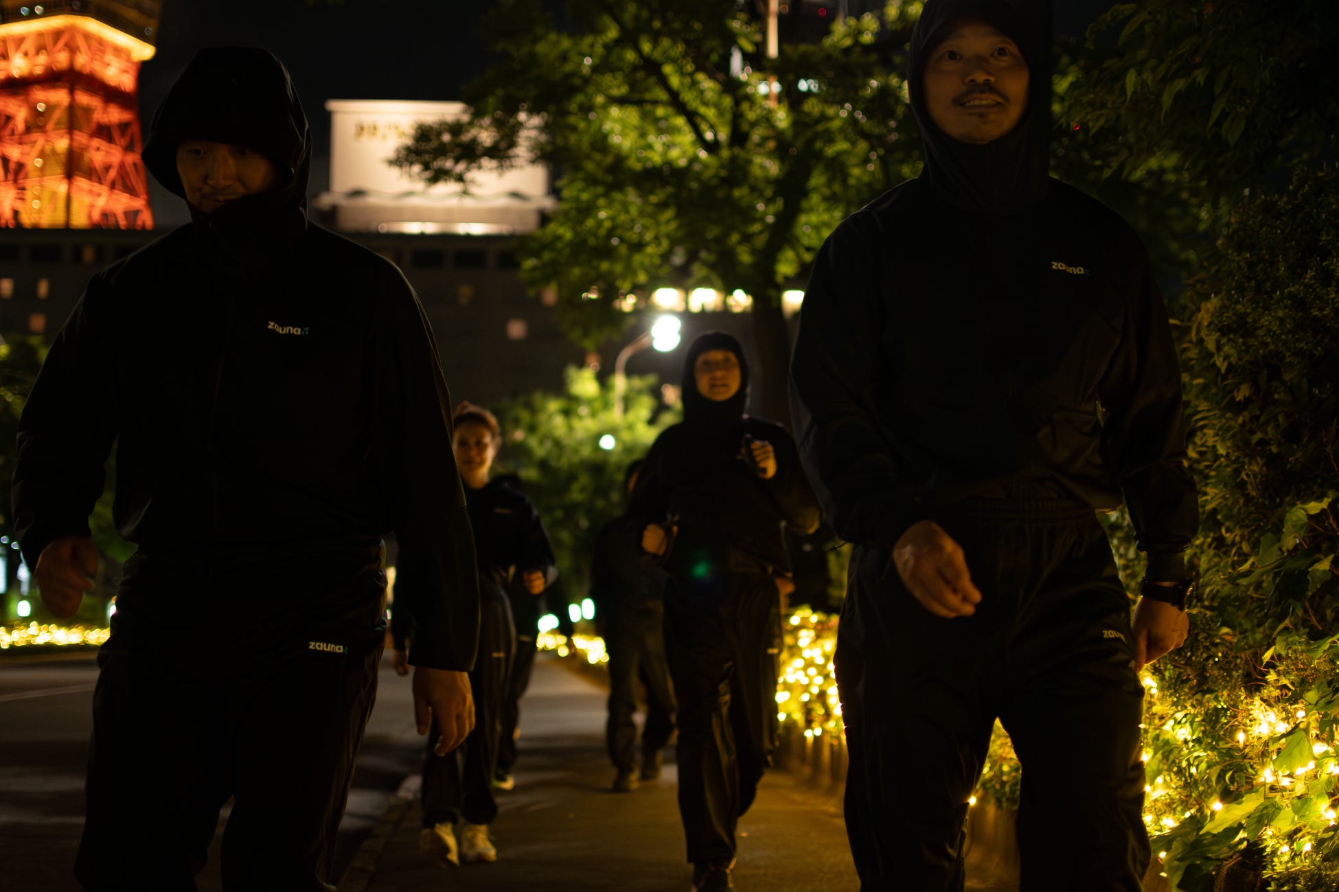 汗をかく目的に特化したデトックスウエア「zauna suit」を着用して、サウナ級の発汗を体感。発汗×トレーニング×ランニングで極上デトックスを。