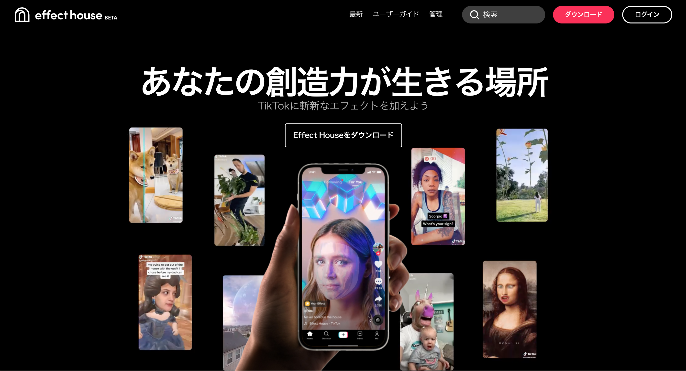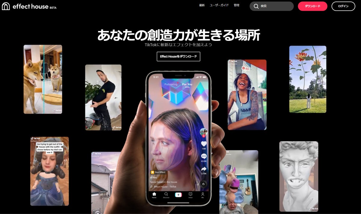 ※現在「Effect House」は公開ベータ版の運⽤となっております。 ロゴやあからさまな宣伝要素がない、コミュニティエフェクト(Community Effect)であれば制作可能です。 コミュニティエフェクトに関しましては以下URLのサイトをご参照ください。