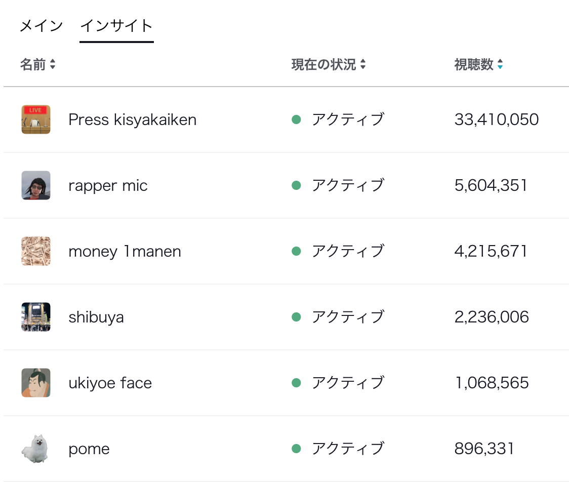 また、他のエフェクトも1つのエフェクトあたり約1か月で視聴回数が100万を超えているものもございます。