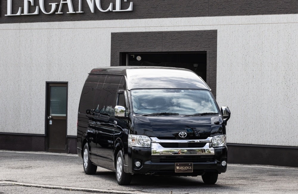 ハイエースの10人乗りビジネス送迎車「ファインテックツアラ ー」を、自社のオリジナルパーツを使用して高級かつ快適にアレ ンジし、その車をレンタルしているというところが一番の特徴です。