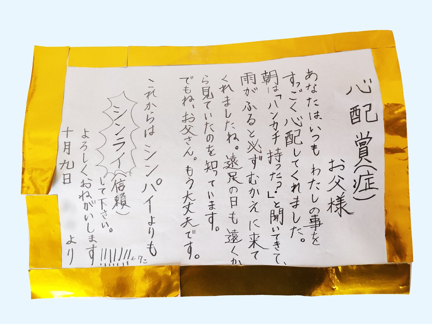・子どもの純粋な想いがまっすぐに伝わる、心あたたまる手作り賞状。