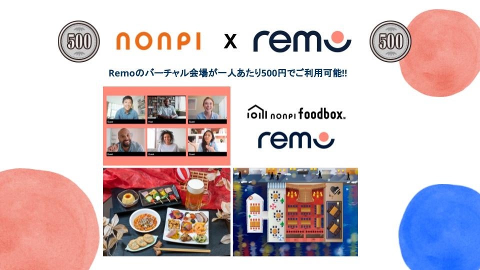 バーチャルイベント空間を提供するリモ・ジャパン合同会社(本社:東京都中央区、代表取締役:ホー イン チェン)と“日本全国に料理と飲み物を1箱にしたフードボックス”をお届けする『nonpi foodbox™』を展開する株式会社ノンピ(本社:東京都港区、代表取締役社長 :柿沼寛之)は昨年締結したパートナーシップ契約強化のため、『nonpi foodbox™』通常オプションとしてRemoを1人500円にてオプション提供させていただきます。
