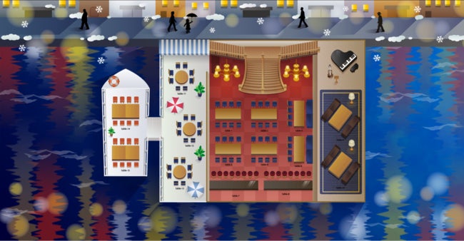 当該プランではnonpi foodbox™が作成した、通常ではご利用いただけない限定フロアプランもご選択いただけます。(写真は船上レストランをモチーフにした限定フロアです。)