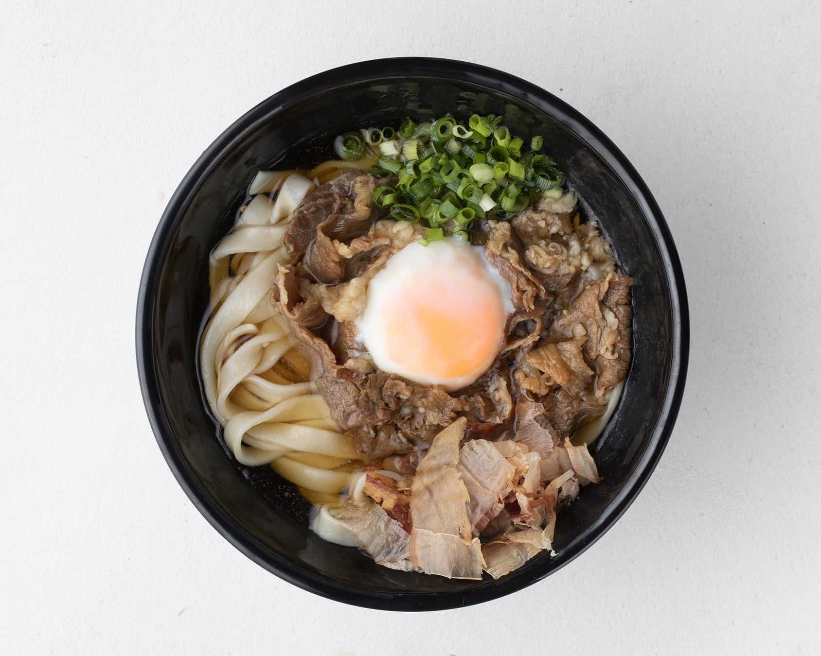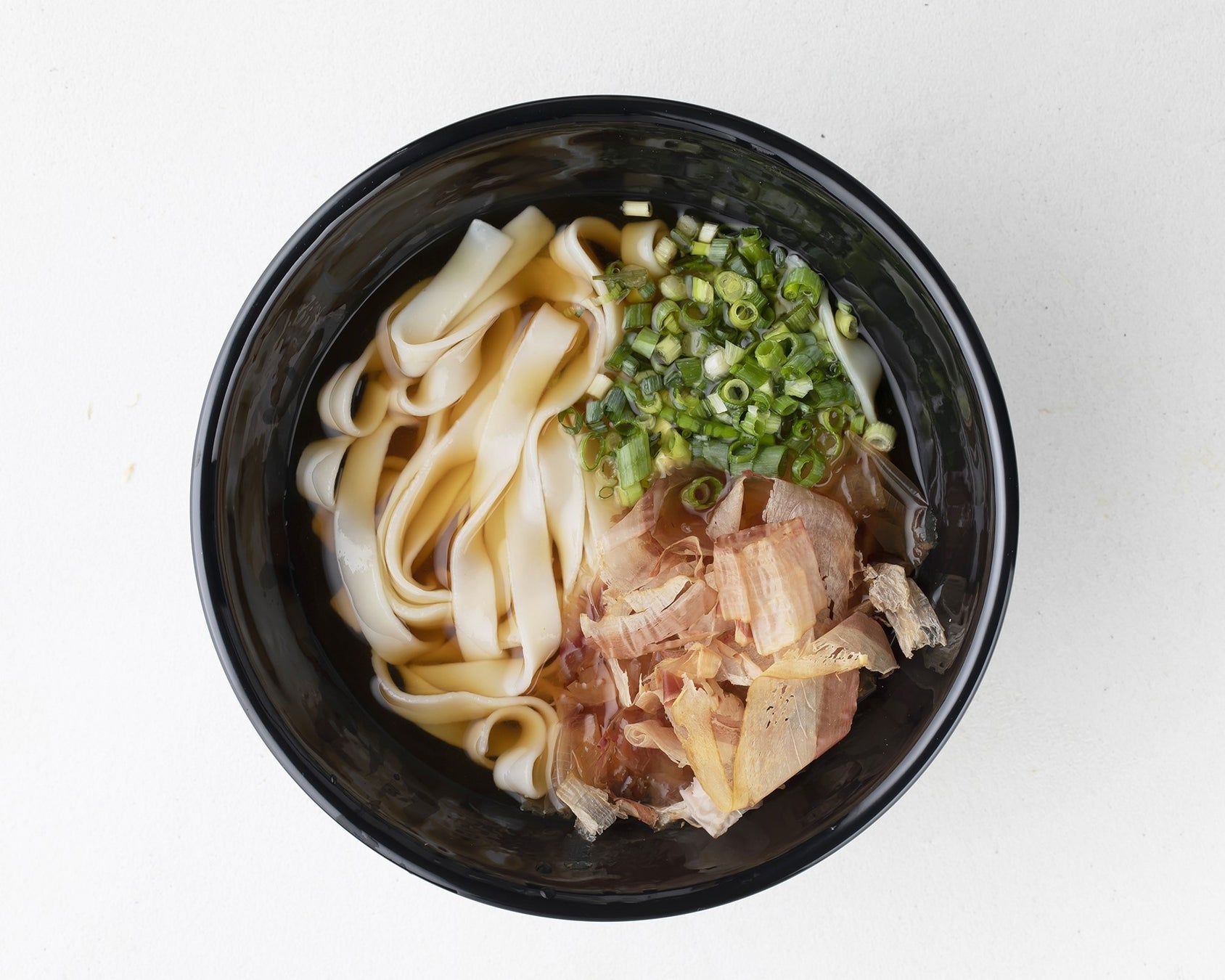 愛知県産小麦「きぬあかり」を使ったもっちりしたきしめんと、東海地方ならではの「さば節」と「むろあじ節」を使った、コクのあるだし汁を使用。名古屋名物きしめんを、より名古屋らしく仕上げました。