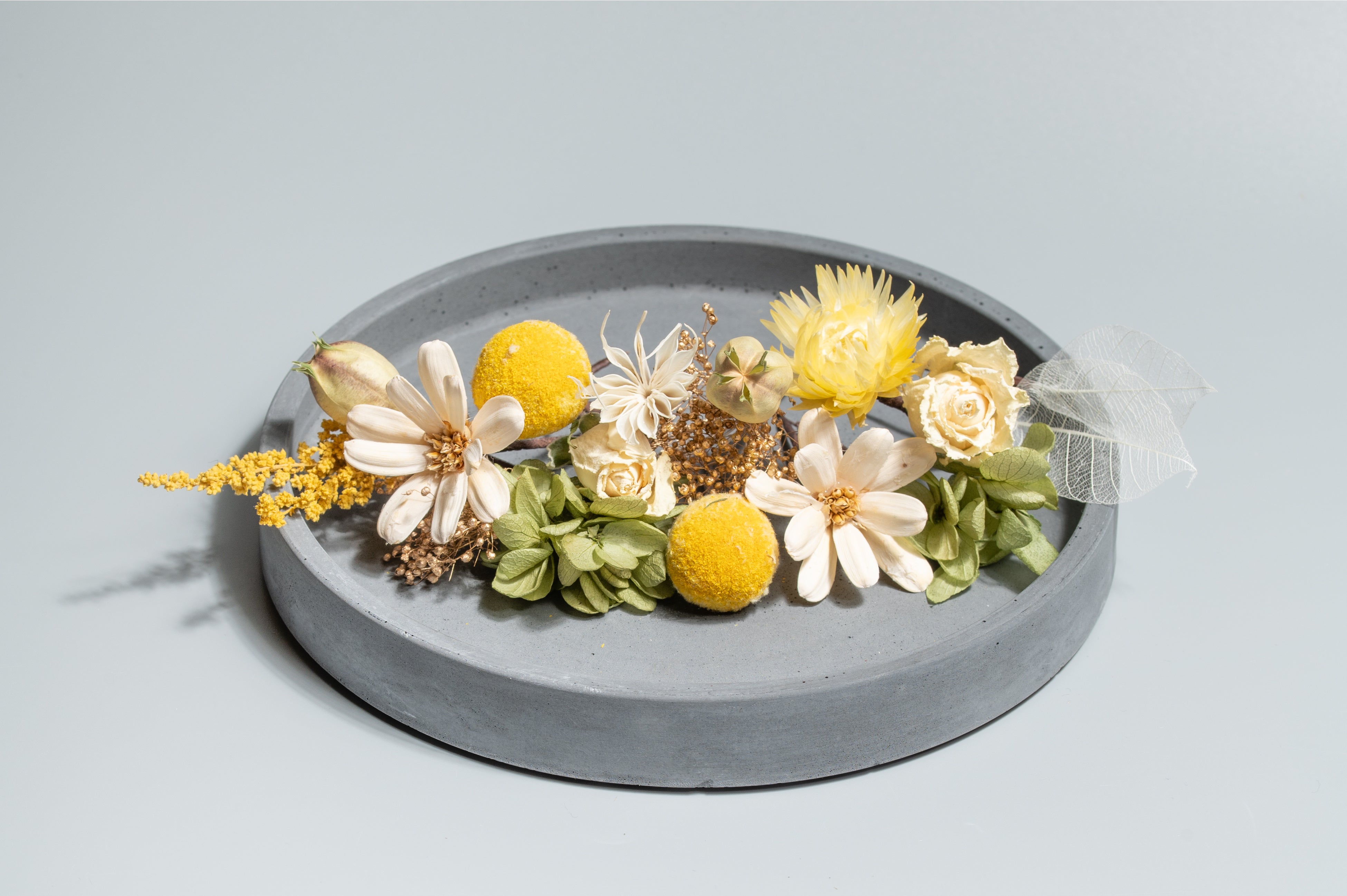 ☑︎ 自社乾燥のドライフラワーに加えプリザーブドフラワーを多用、多色展開