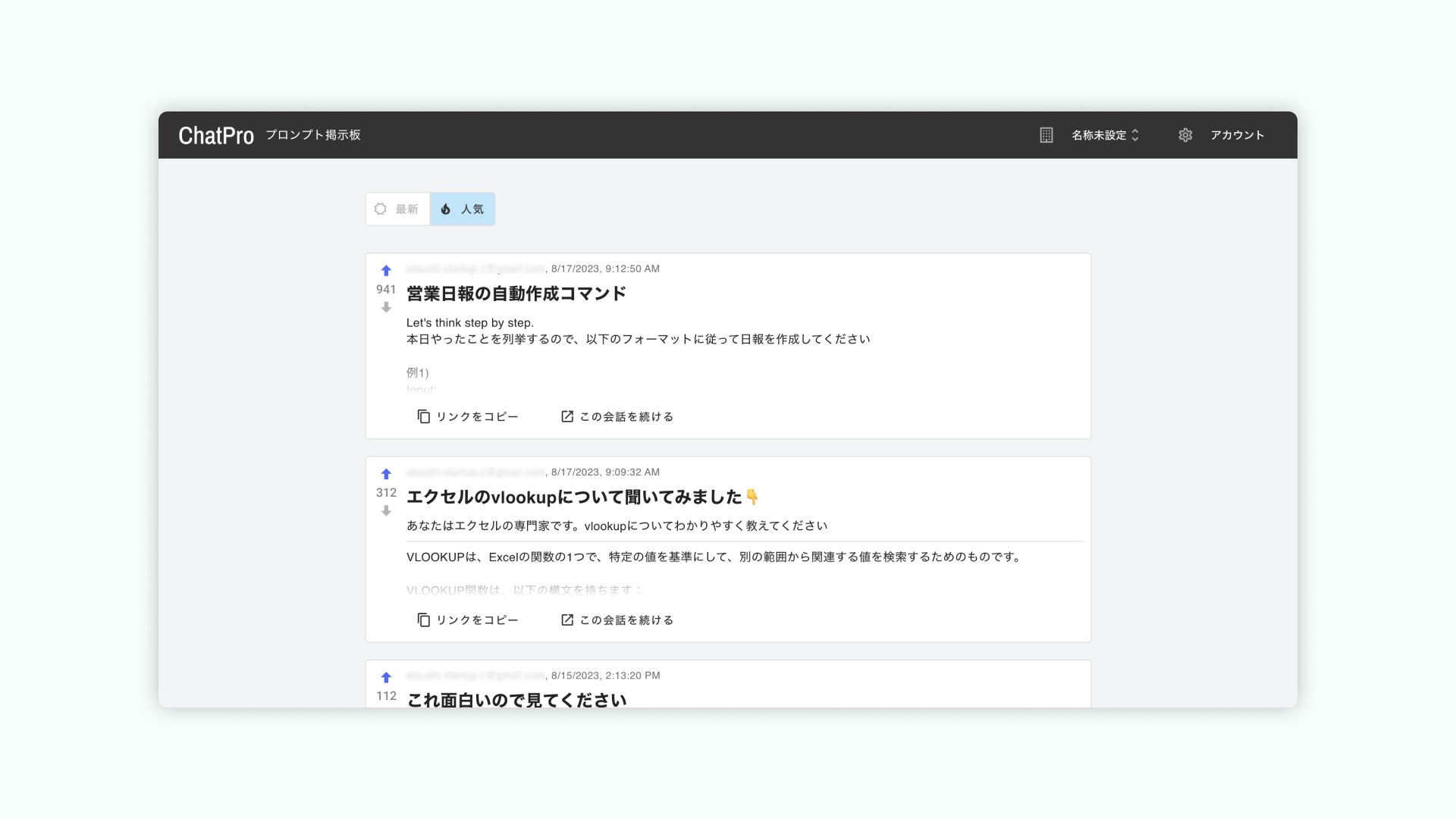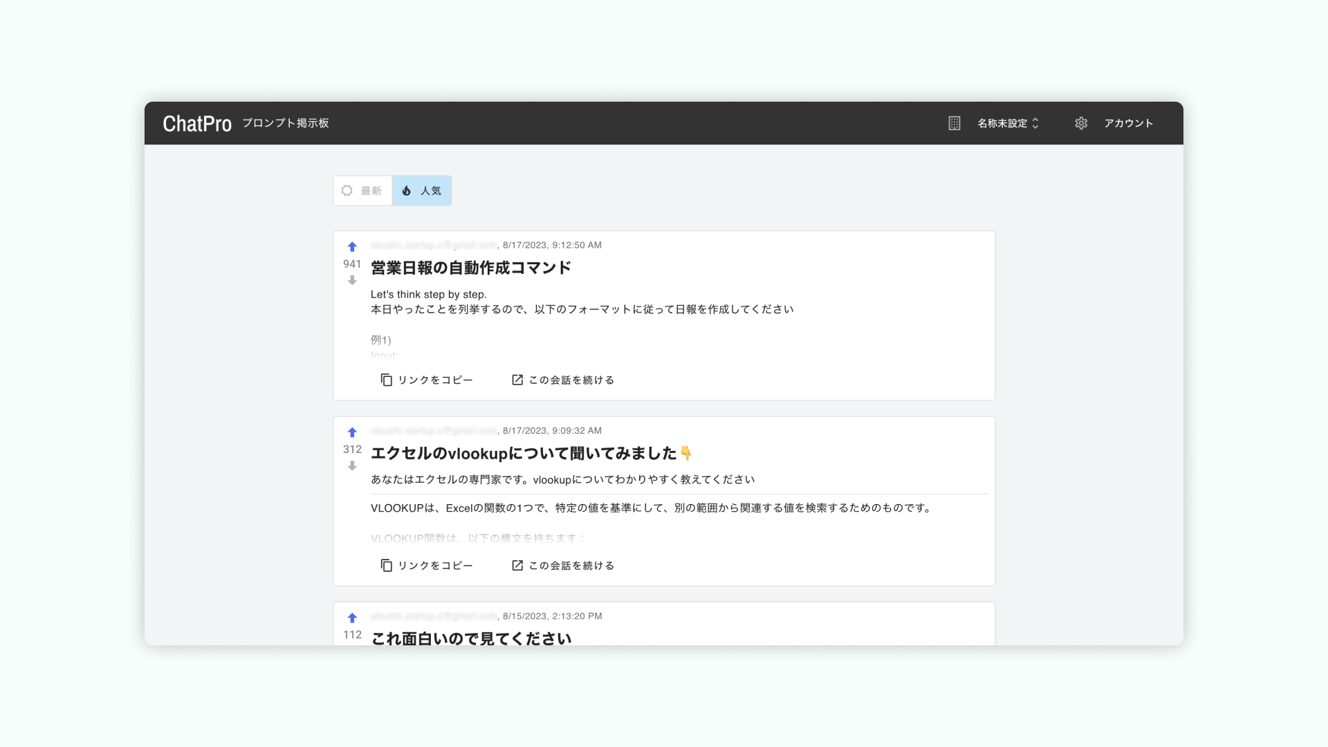 そのようなニーズを踏まえ、社内の、良い活用事例を共有するための機能「プロンプト掲示板」を実装・リリース致しました。