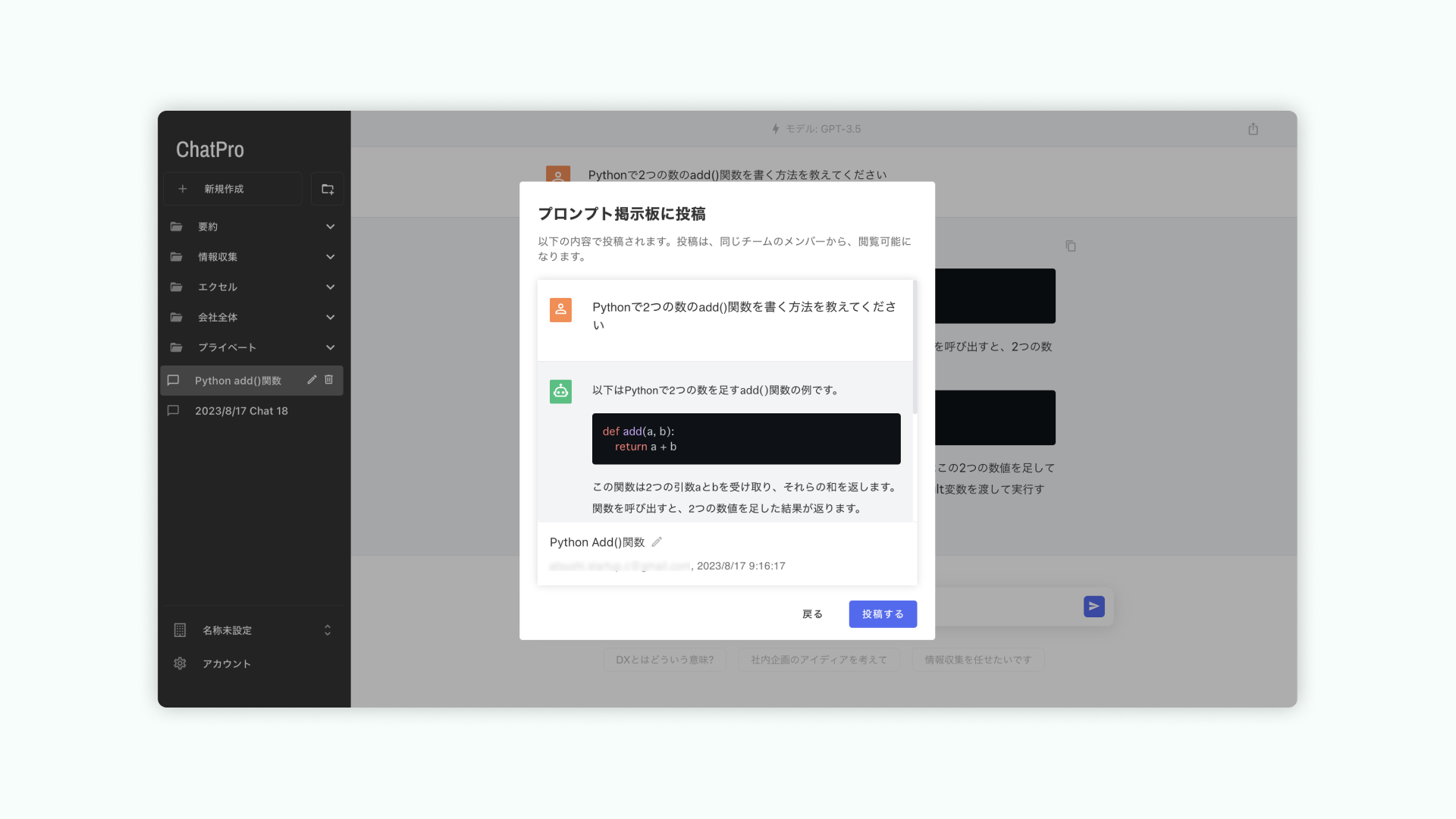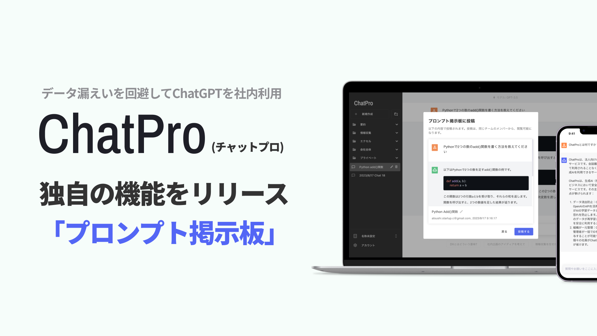 ChatGPT法人アカウントサービス「ChatPro」、プロンプトの共有機能をリリース。事例の共有を簡単に