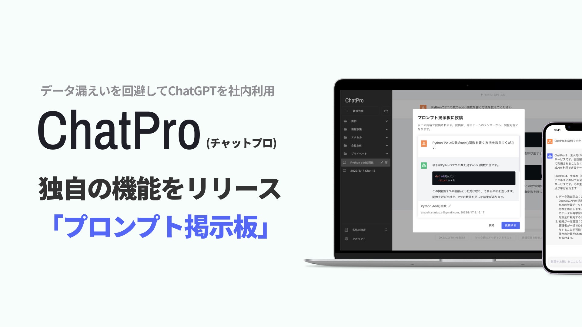 ■ 学習データに使われない、法人向けChatGPTサービス「ChatPro(チャットプロ)」について