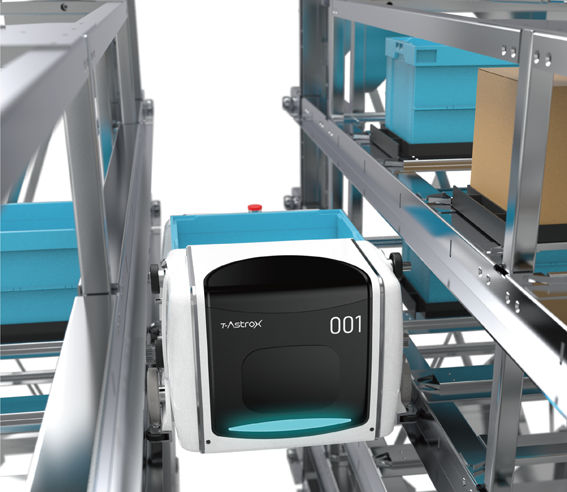 T-AstroXは、商品が作業者の手元まで台車で運ばれてくる「Goods to Person」方式のシステムです。