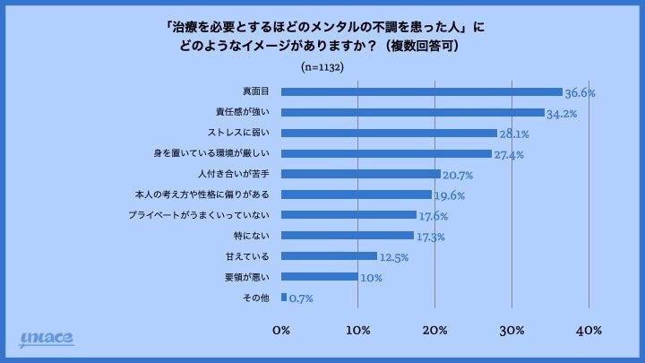 メンタル不調を患った人へのイメージは「メンタルが弱いから」より「真面目」「責任感が強い」が多数