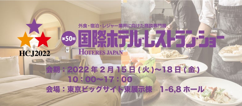 今回で50回目となる当展示会は、ホテルやレストランなどホスピタリティとフードサービス業界における国内最大級の商談専門展示会「HCJ2022(エイチシージェー2022)」内の1つで、外食・宿泊・レジャー業界に向けた商談専門店です。同時にフード・ケータリングショー、厨房設備機器展が開催され、業界関係者が多数来場いたします。