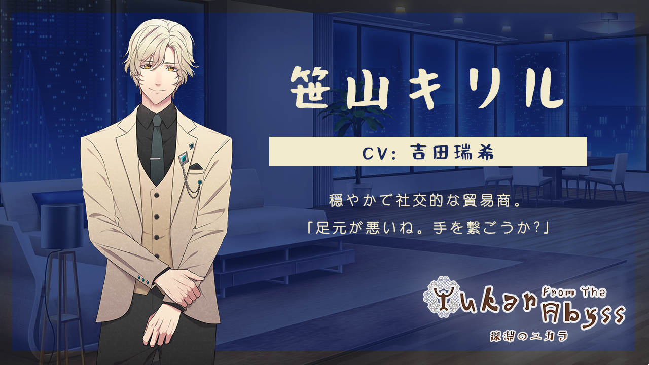 アドベンチャーズ株式会社(所在地: 東京都港区、代表取締役: 玉井友里) が運営するゲームブランド LocaGames は、2022年末発売予定のファンタジー乙女ゲーム「深淵のユカラ」について、メインキャスト4名が決定したことを発表します。発表に伴い、ボイス付きキャラクター紹介動画を公開しました。
