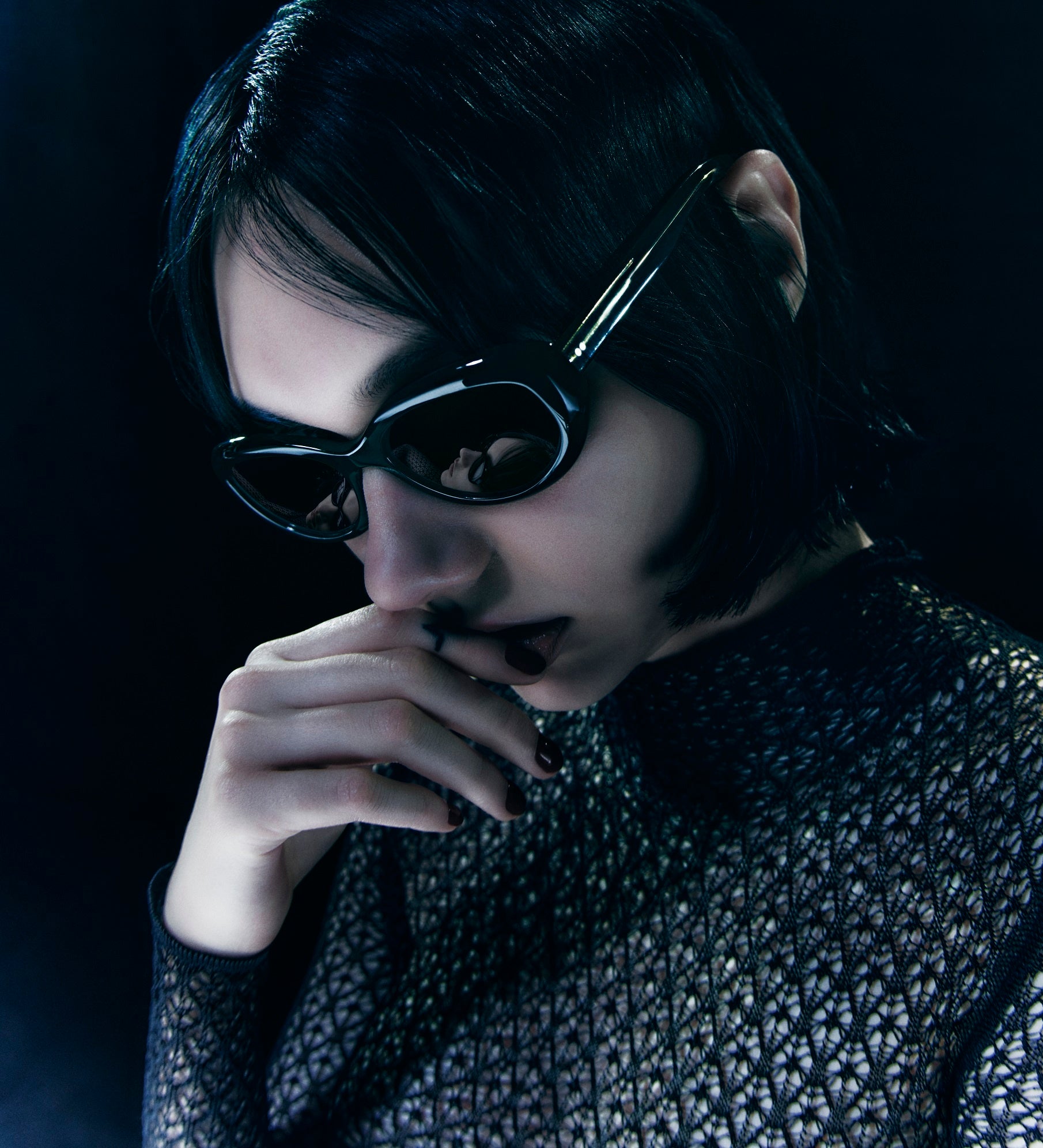 KHAITE x Oliver Peoplesコレクションのキャンペーンには国際的に活躍するモデル、スタインバーグ(Steinberg)を起用。キャサリン・ホルスタインがクリエイティブディレクターを務め、フォトグラファーのハンナ・トヴェイト(Hanna Tveite)が撮影を手掛けました。キャンペーンコンセプトには、オリバーピープルズのレンズを通して見たケイトの世界観が反映されています。矛盾、ミステリー、潜在意識、オルター・エゴ(別人格)、光と闇が見事に表現され、自然が作り出す影そのもの、そして逆転したビジョンに誘惑される衝動、さらには探求したい気持ちが描かれています。サングラスもまた、ビジョンを変えるものです。すぐに変装することや世界を薄暗くすること、ありふれた風景の中に姿を隠すことを可能にするサングラスは、常に日常生活の裏側に潜むこの世界とはべつの世界へと一瞬で誘ってくれます。このキャンペーンでは、今回の特別なコレクションの本質を示すこれらの“双対性”が見事に描かれています。