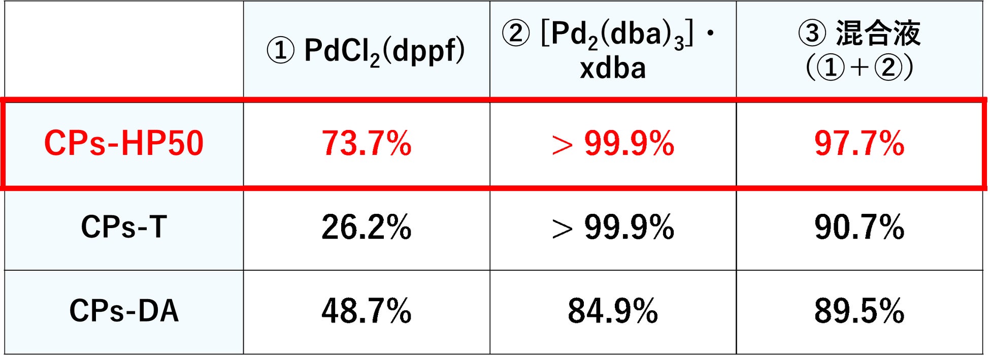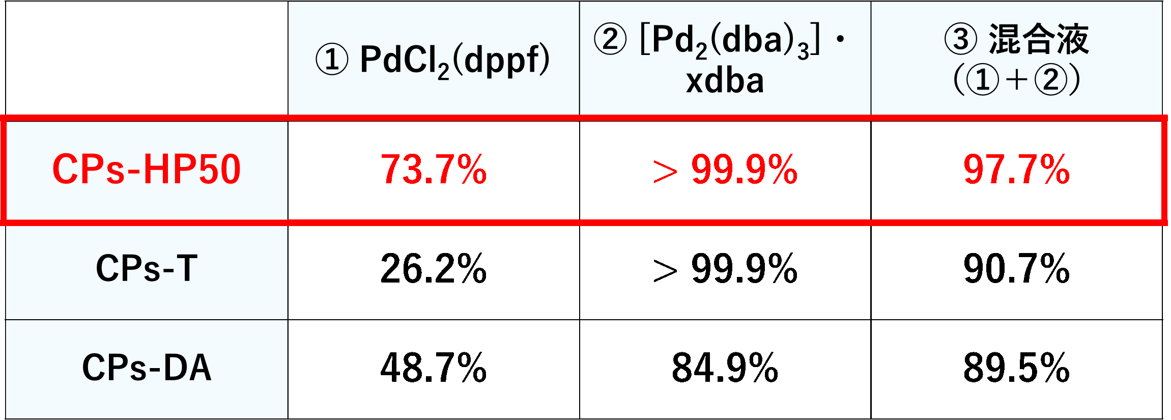 上記特徴を持つ「CPs-HP50」は、元素不純物ガイドラインの規制強化に伴い、需要が高まっている医薬品製造における化学化合物からの微量貴金属の除去に貢献します。