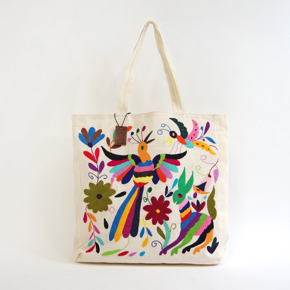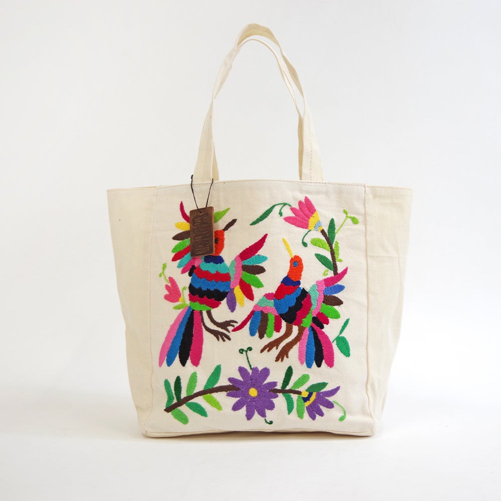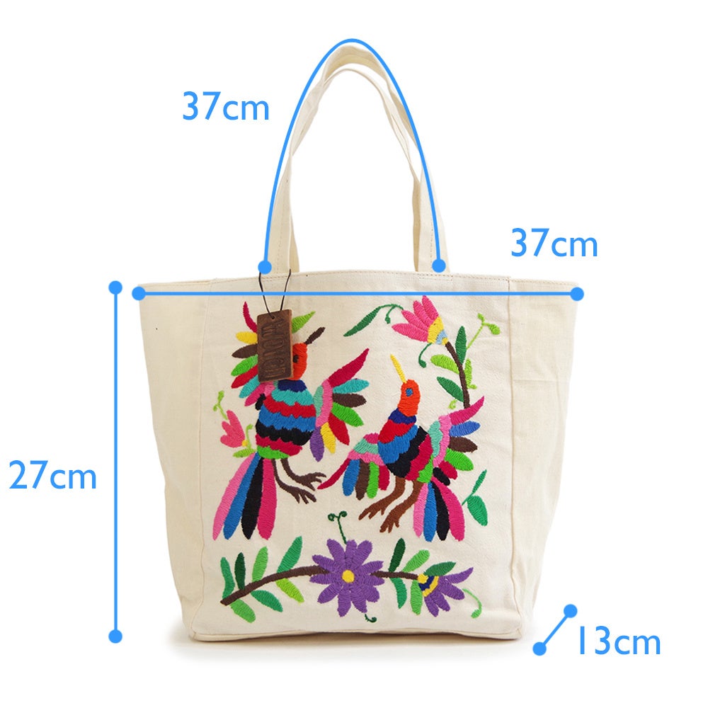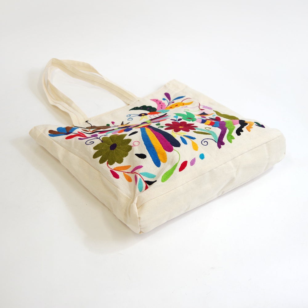 小花や小鳥など、メキシコでよくみられる身近な日常からインスピレーションを受け、たくさんの色や模様を使う刺繍は「オトミ刺繍」としてもよく知られています。
