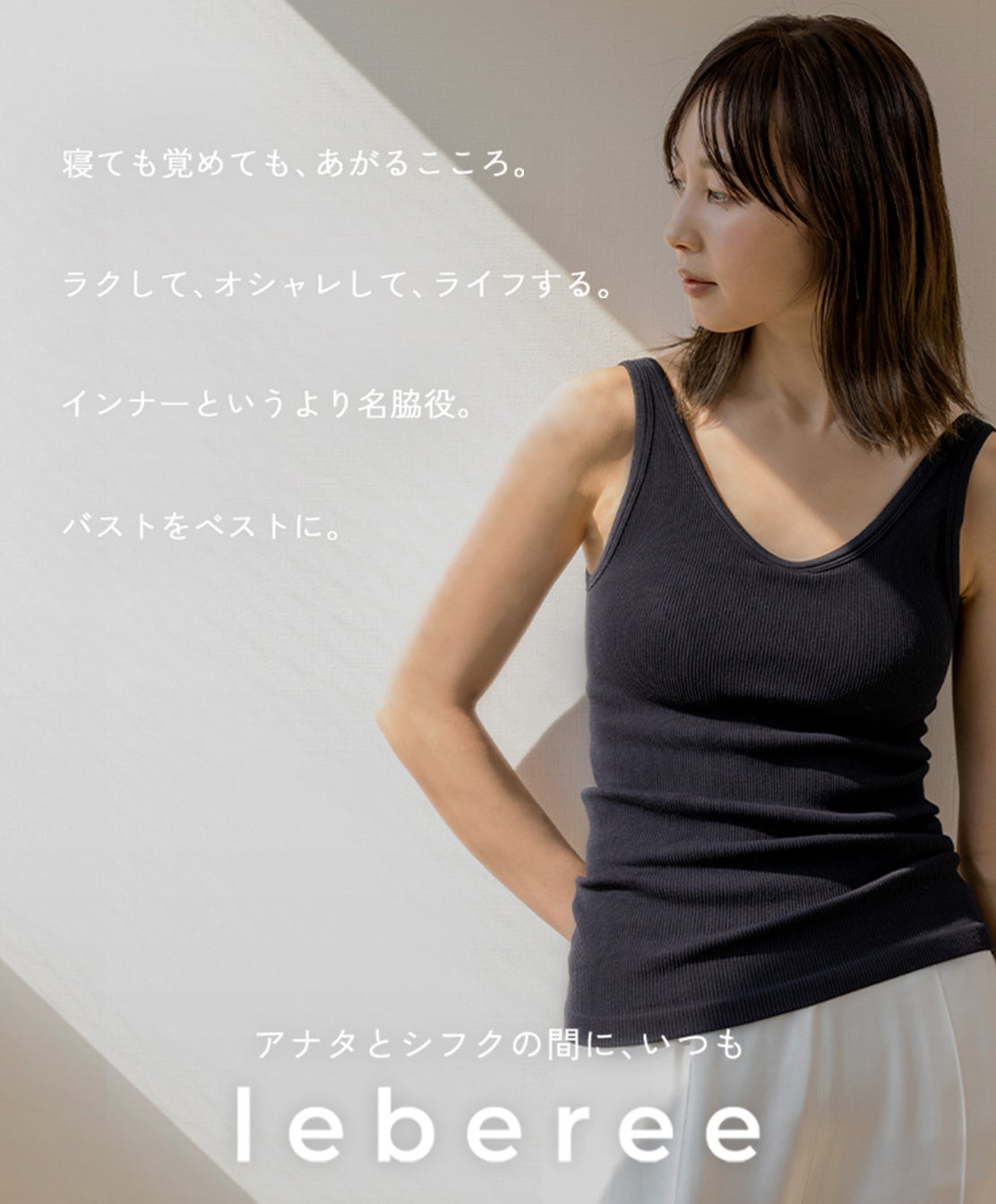 Lebereeは、KYOKO(Instagramフォロワー数:11.9万人)が0からプロデュースする新感覚インナーウェアブランド。「美しさと心地よさを両立させたい」という女性の強く切実な願いをカタチにしたブランドです。数あるインナーウェアの課題感である、つけ心地のよさ、ホールド力、おしゃれを叶えるブラジャーでもなく、ブラトップでもない新しいカタチの提案として「ブランナー」という新ジャンルを打ち立て展開しています。