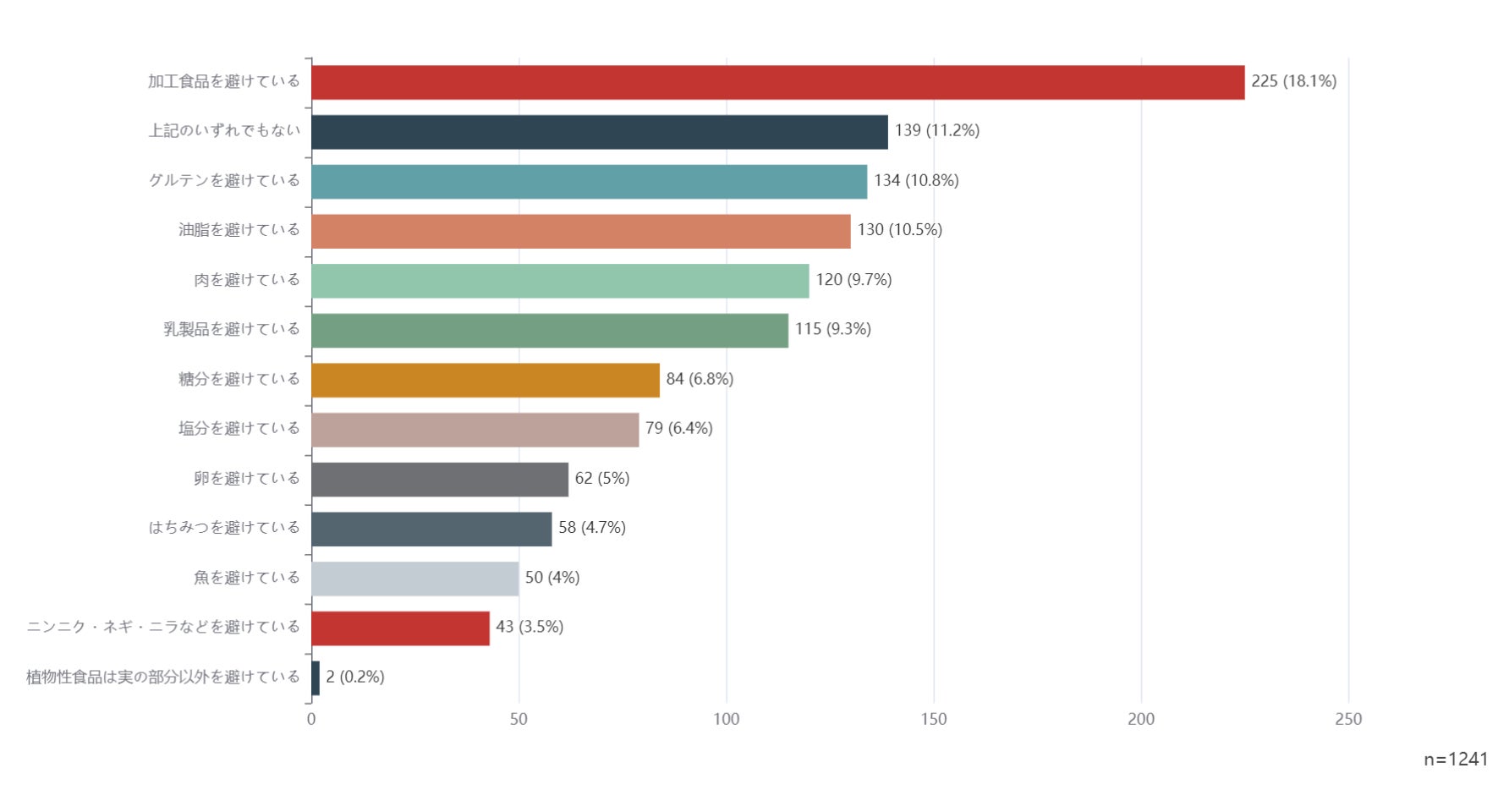 ・最も多かった「避けている食材」は18.1%で「加工食品」