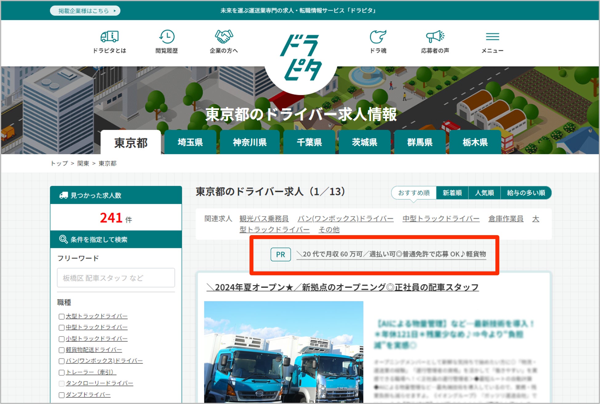 【運送業専門求人サービス ドラピタ】