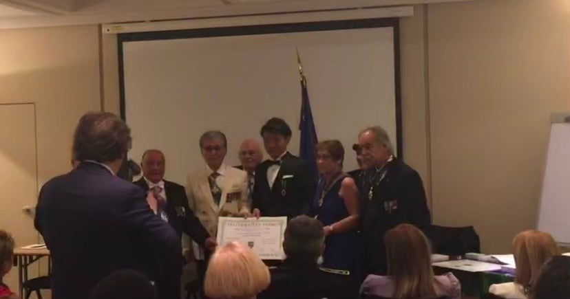 19年にはフランスにて社会奨励勲章officierを含む2つの勲章を最年少授章。