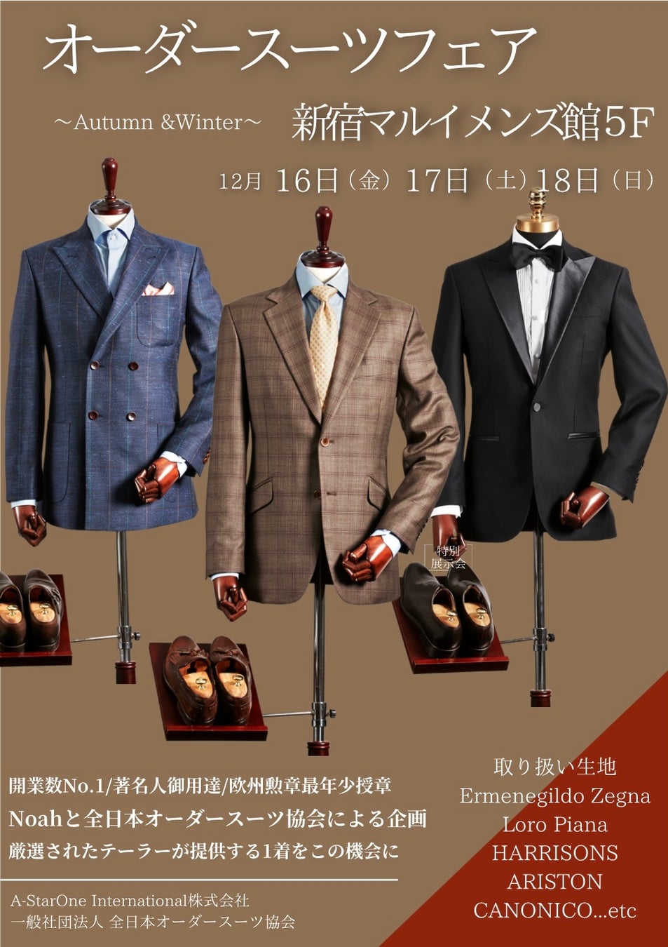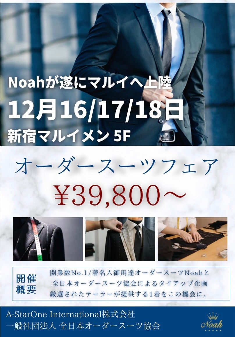 開業数全国No.1オーダースーツNoah「新宿マルイメン」にて期間限定<Noah×全日本オーダー スーツ協会> WINTER ポップアップストアを開催!