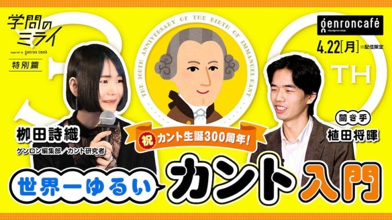 哲学者イマニュエル・カントの生誕300周年を記念した、カント研究者の栁田詩織さんによる特別講義。「超越論的観念論」「アンチノミー」「定言命法」などの重要カント用語をわかりやすく解説。