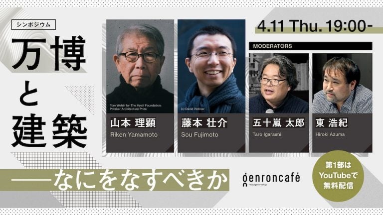 2025年開催の大阪・関西万博に向けたシンポジウム。プリツカー賞受賞直後の山本理顕さんと、万博会場デザインプロデューサー藤本壮介さんによる激論が交わされた4時間半。モデレーターは、建築批評家の五十嵐太郎さんと東浩紀。