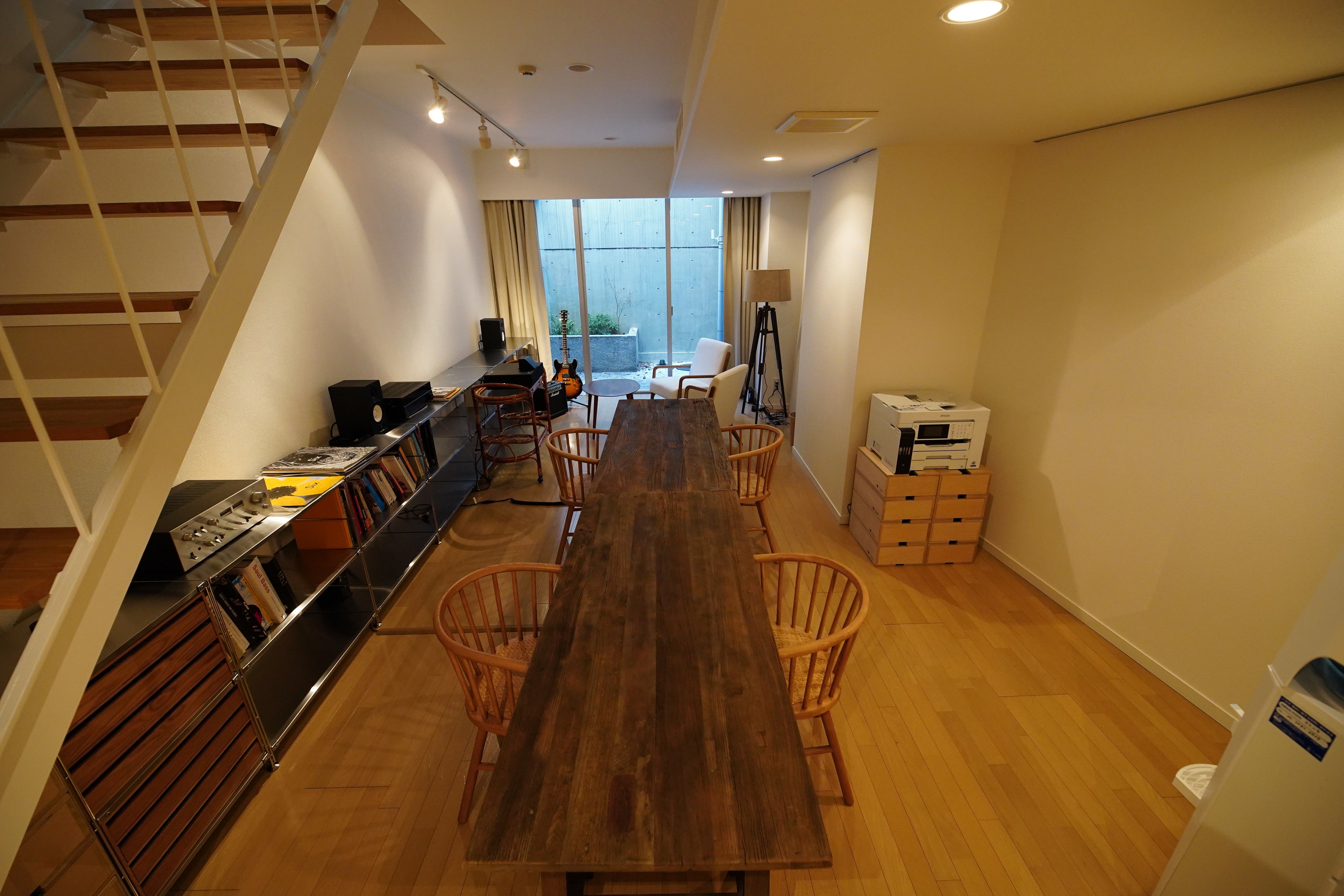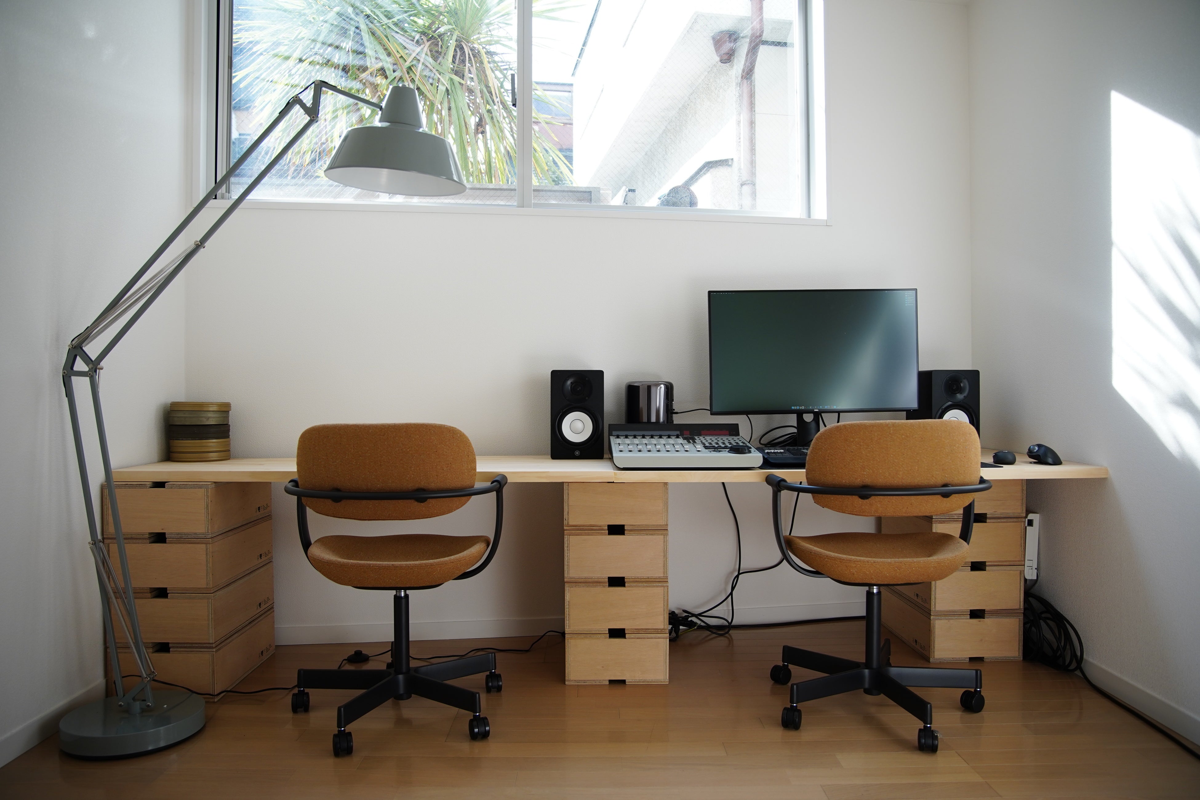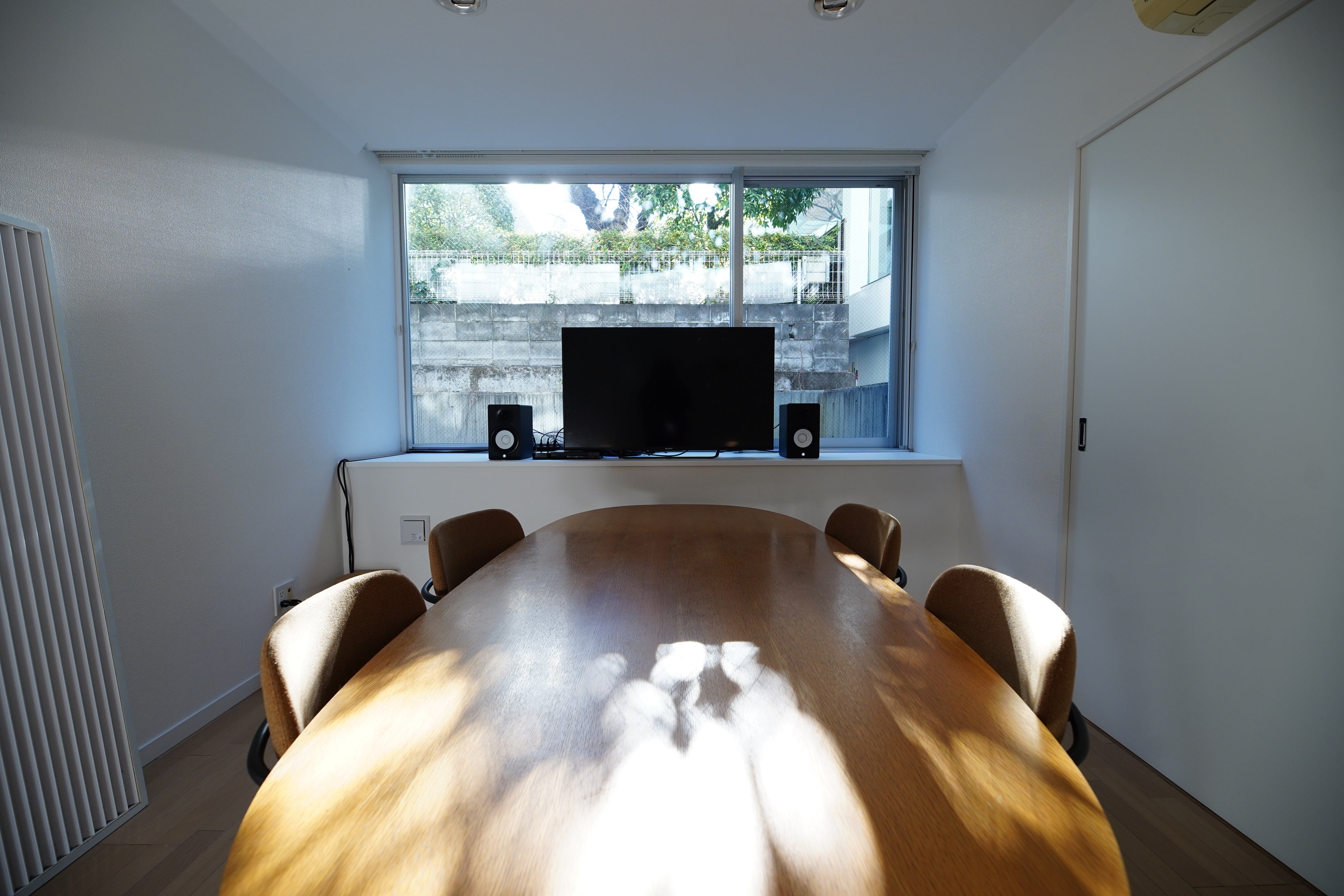 世田谷区奥沢にあるオフィスに加え、より交通の便がよく、尚且つ皆様とくつろげる環境でお話ができる空間をと考え、渋谷オフィス開設に至りました。天気の良い日は、とても素敵な光の入る明るいスペースとなっており、気持ちの良い窓際のミーティングスペースや、落ち着いてじっくり集中のできる編集スペース、B1フロアでは大画面で試写ができる設備も用意しました。またインテリアは、当社が金沢市にて運営するギャラリーショップ「wai / 歪(わい)」で販売している箱馬などのアイテムも活用しています。