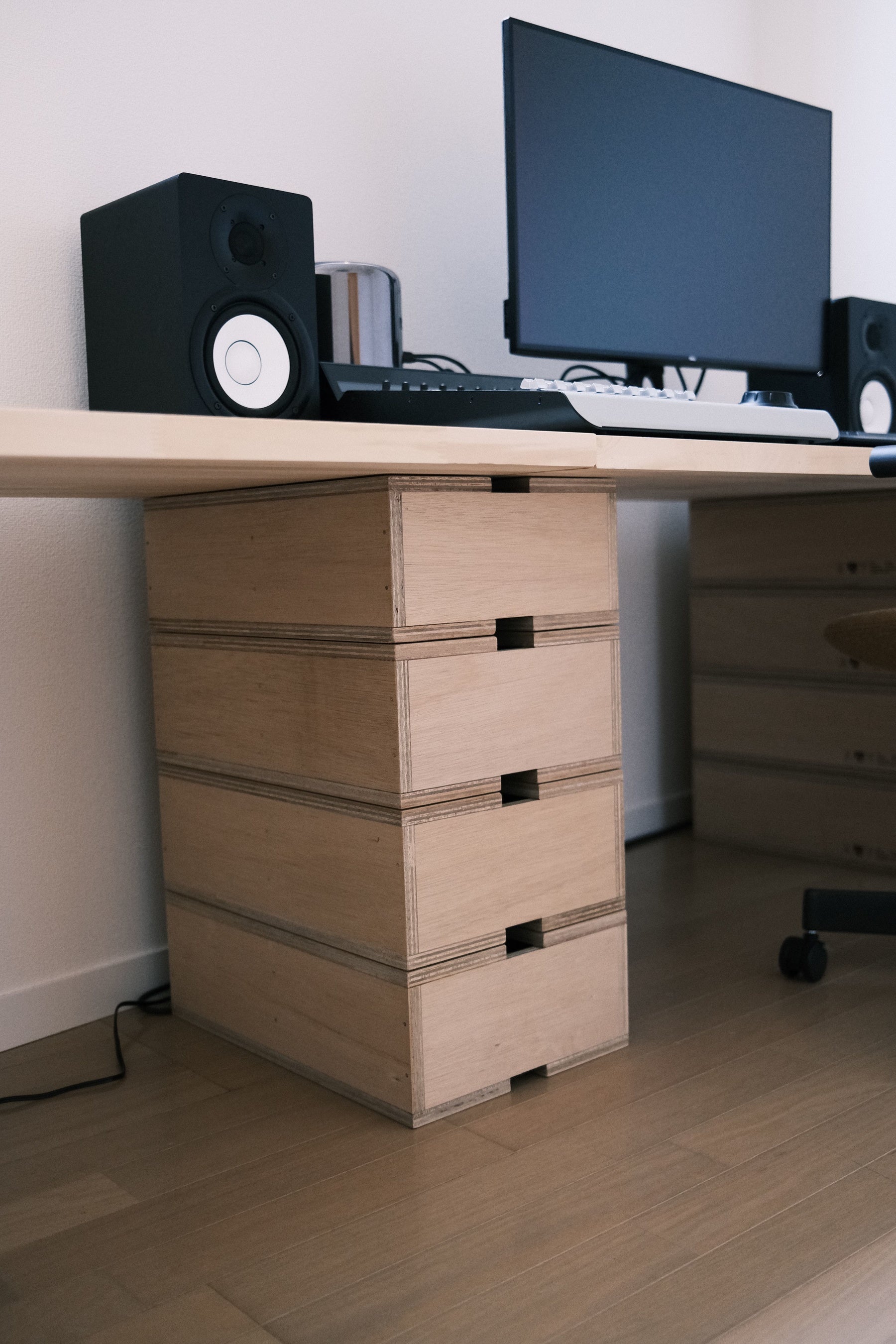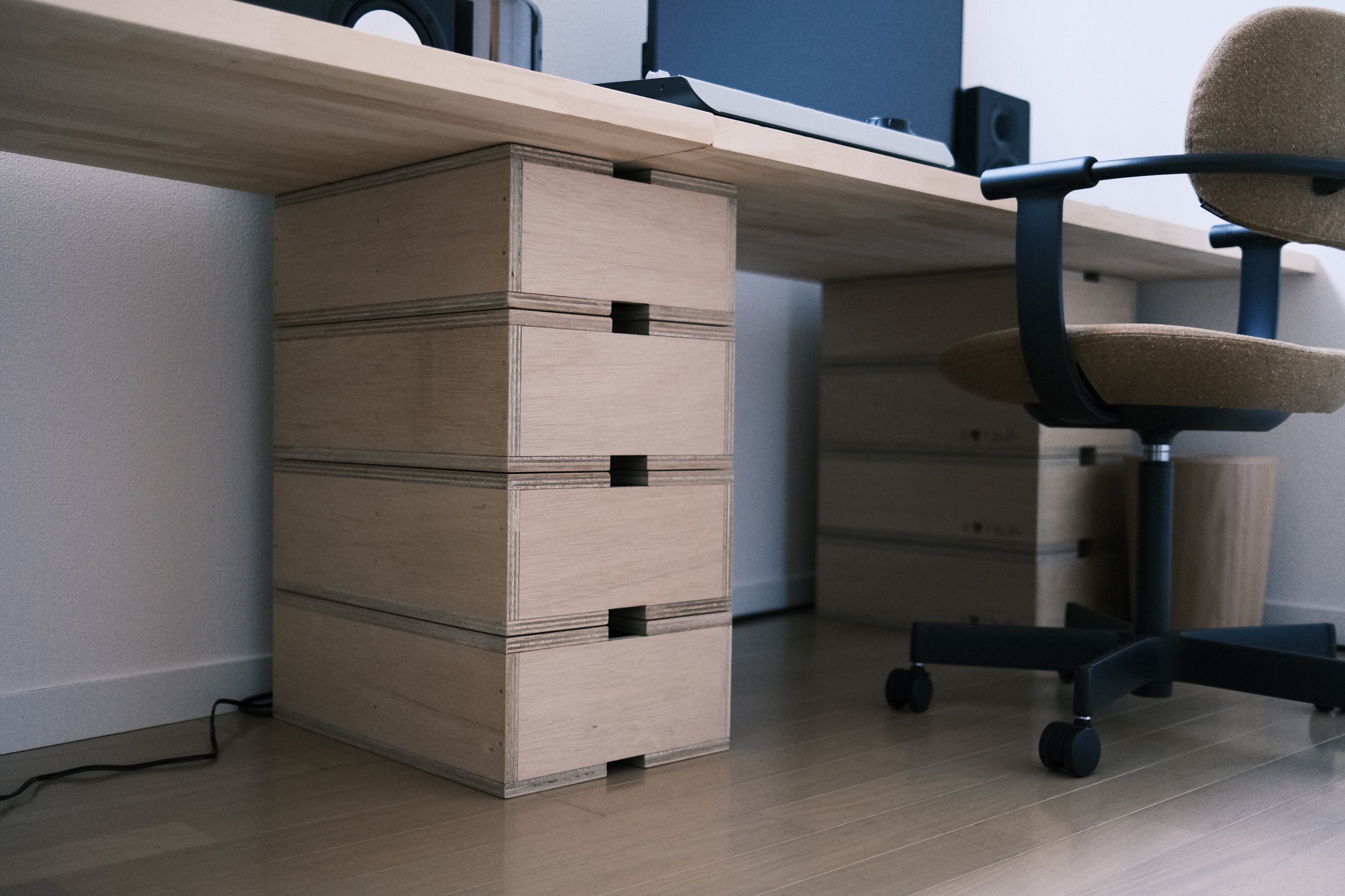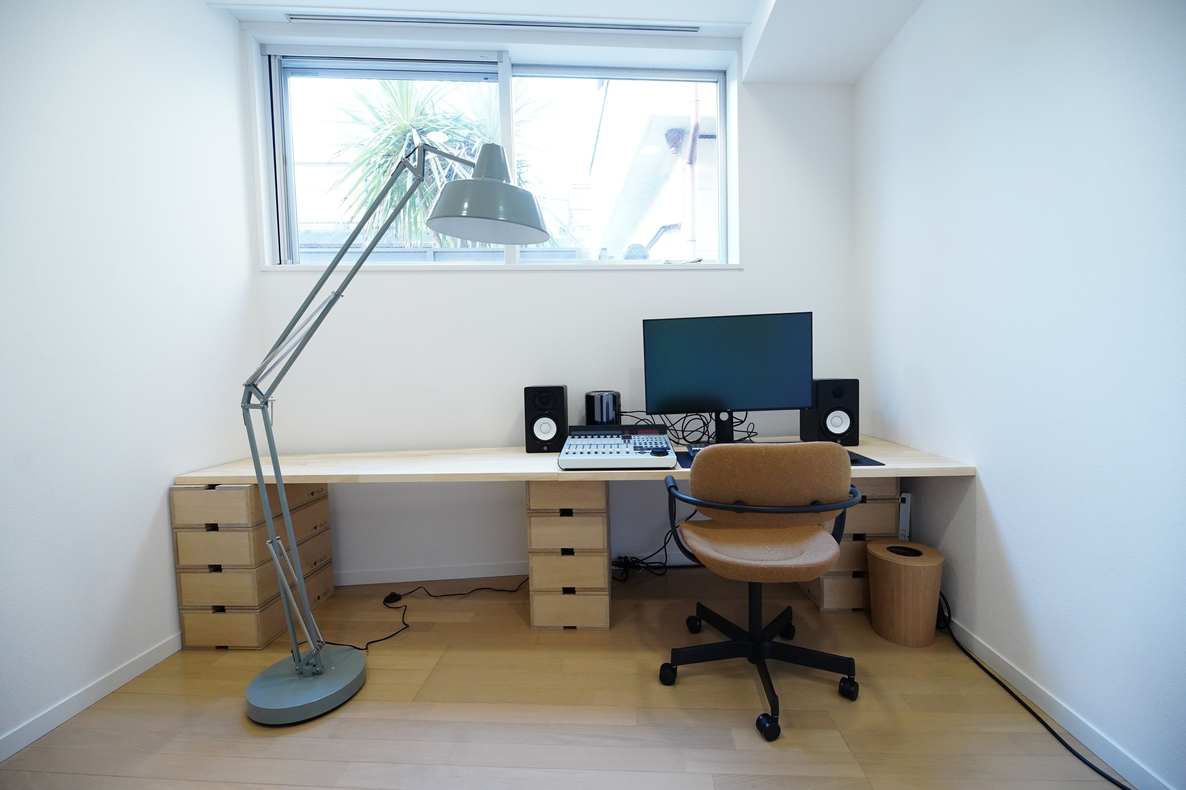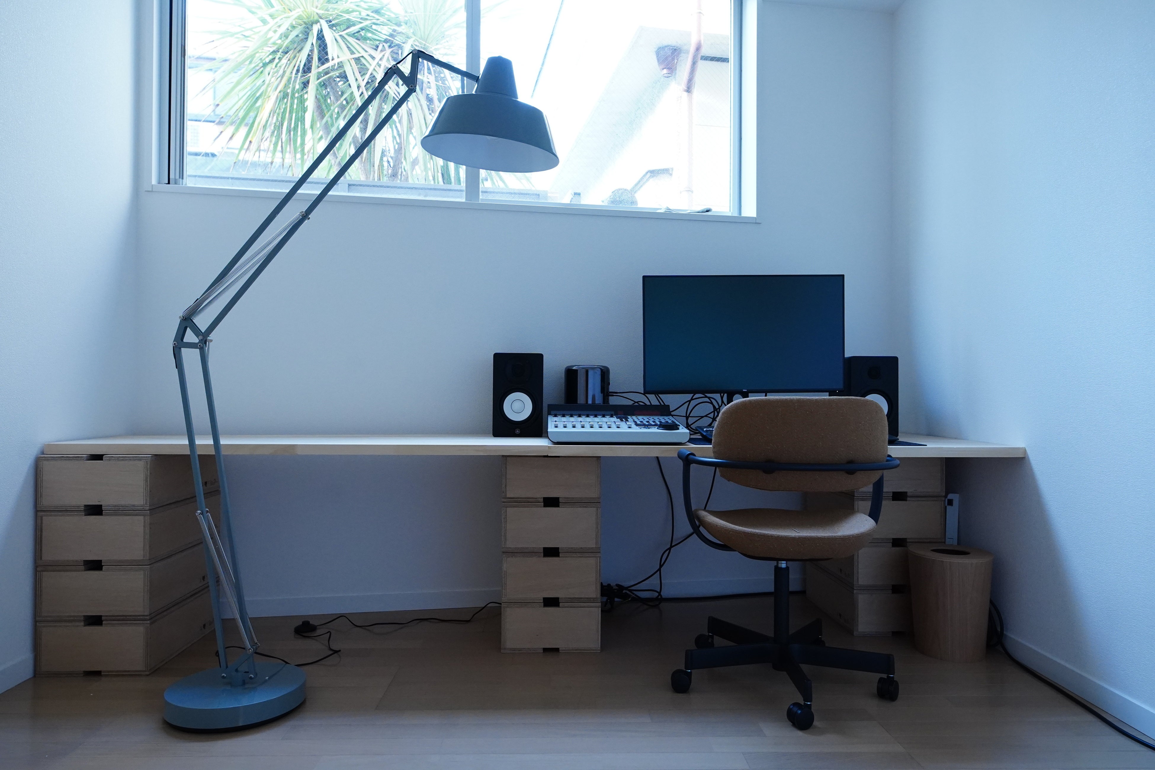 世田谷区奥沢にあるオフィスに加え、より交通の便がよく、尚且つ皆様とくつろげる環境でお話ができる空間をと考え、渋谷オフィス開設に至りました。天気の良い日は、とても素敵な光の入る明るいスペースとなっており、気持ちの良い窓際のミーティングスペースや、落ち着いてじっくり集中のできる編集スペース、B1フロアでは大画面で試写ができる設備も用意しました。またインテリアは、当社が金沢市にて運営するギャラリーショップ「wai / 歪(わい)」で販売している箱馬などのアイテムも活用しています。
