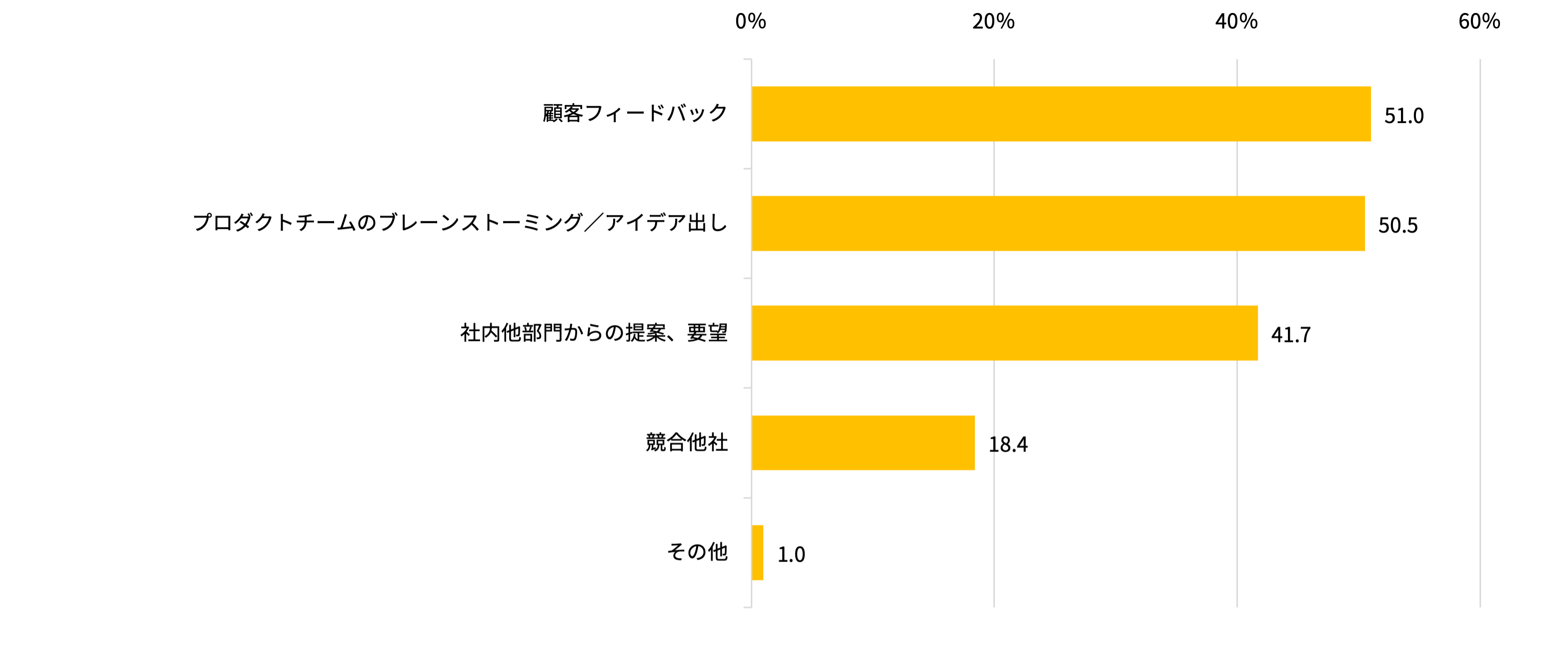 ✓プロダクト開発のためのデータ収集は「顧客フィードバック」からが多数