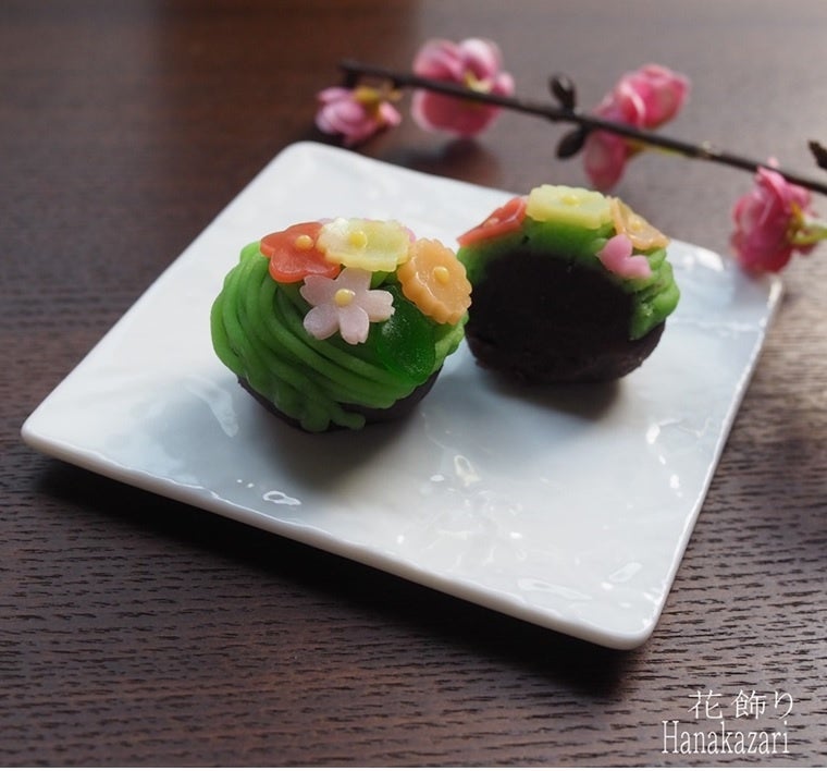 ●花飾り【練り切り餡でこし餡を覆い、羊かん花びらでブーケを表現】