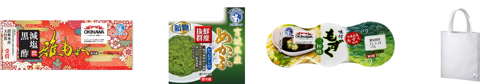 本キャンペーンにご応募いただくと、抽選でトリトンフーヅが販売する豪華海藻商品が当たります。A賞では沖縄県産のもずくを100%使用し、農林水産大臣賞も受賞した「雅もずく」が365日分※が当たるほか、特別な製法で鮮度と風味を保った宮城県産の「鮮度抜群めかぶ」100日分など、豪華な賞品をプレゼントします。