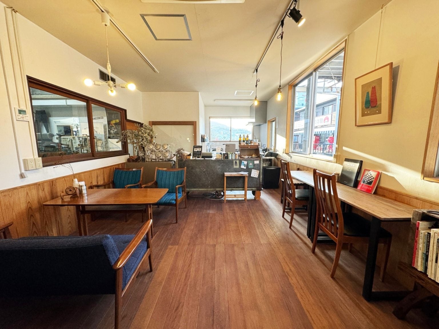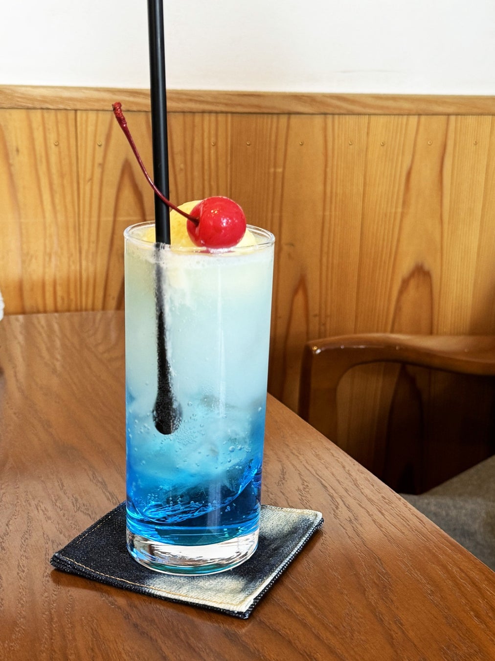 第二ジーンズミュージアム1Fに併設のカフェでは、ジーンズにちなんだメニューも増えました。店内にはジーンズやファッション、児島に関連する本もあり、ジーンズ文化を感じながら美味しいドリンクやスイーツを楽しめます。