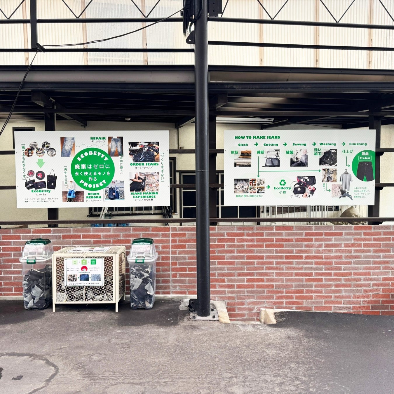 店舗入り口のアーケード下には「捨てるものを減らし、永く使えるものを作る」ベティスミスの取り組みを紹介しています。