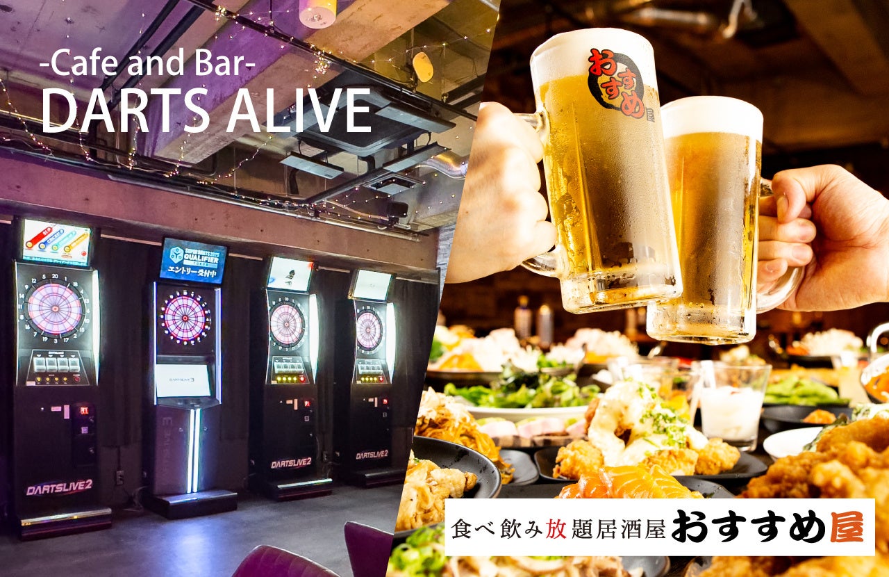 【神戸初上陸】2500円食べ飲み放題居酒屋“おすすめ屋 神戸三宮"、ダーツバー"ALIVE 神戸三宮店"が同時オープン