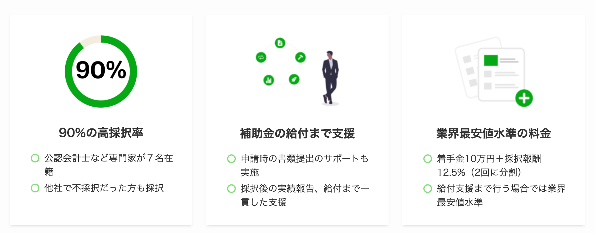 【①:90%の採択率!あらゆる業種に精通した専⾨家が⽀援】